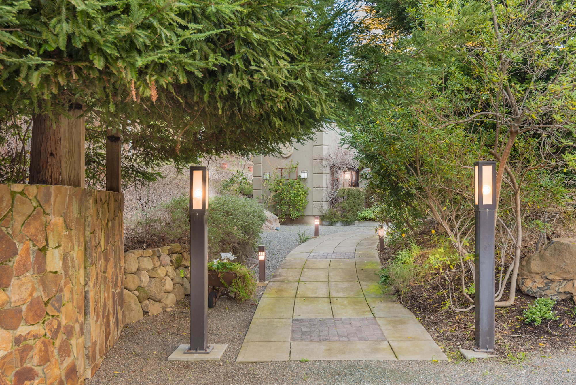 One of the largest and oldest bay trees in the Valley of the Moon grows at the land’s northern end. Behind 10-foot fencing are two thriving raised-bed vegetable gardens.