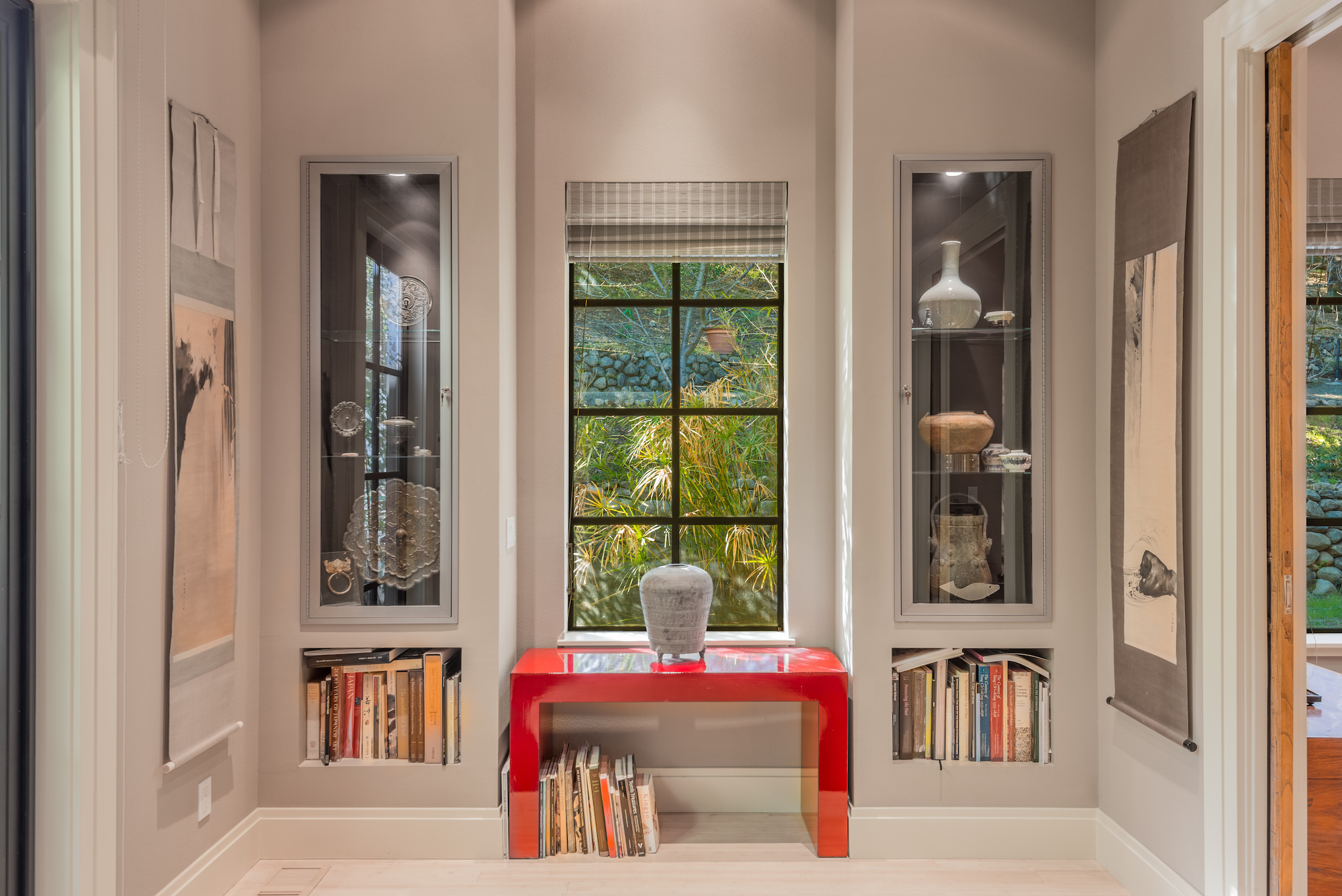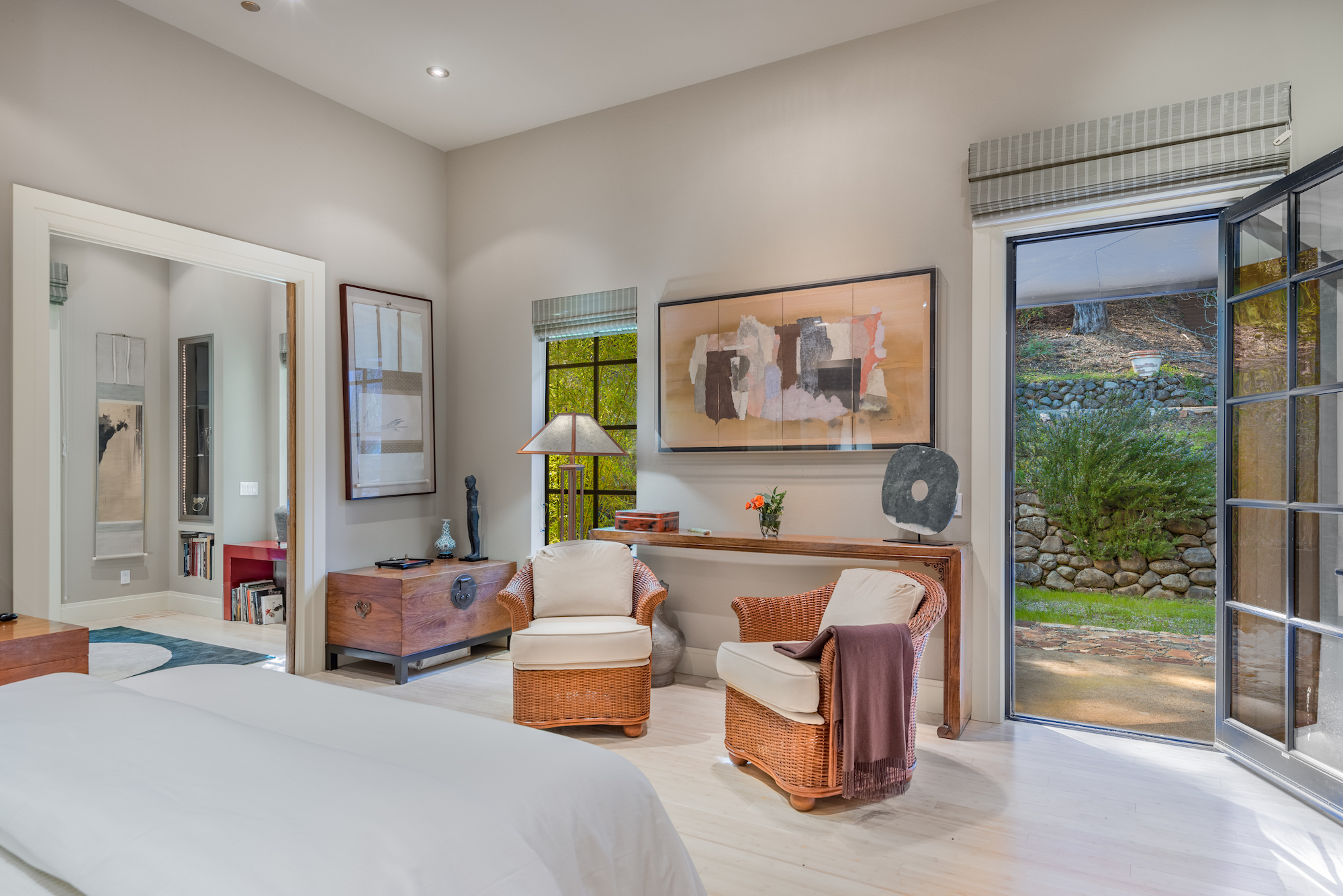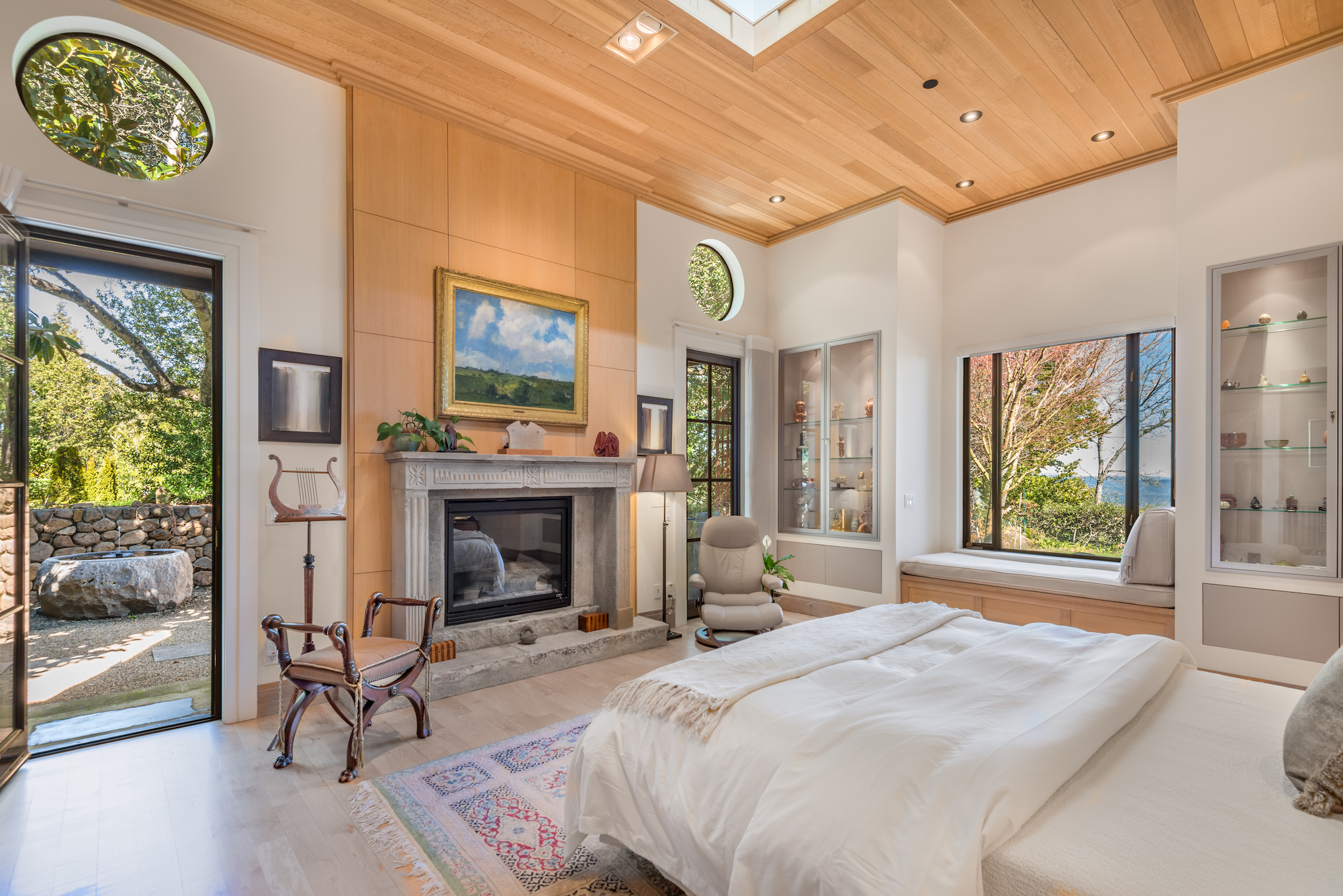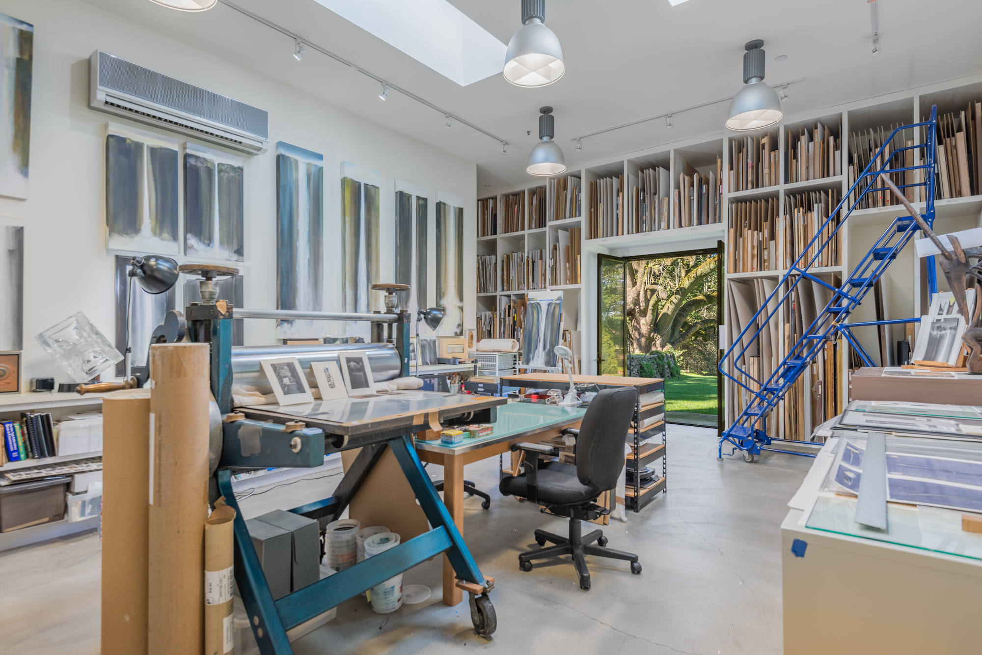 The spaces are versatile: the library could be easily adapted to serve as a home theater or billiards room, while the artist’s impressive studio could function as a gym, a meditation room, or a family room.