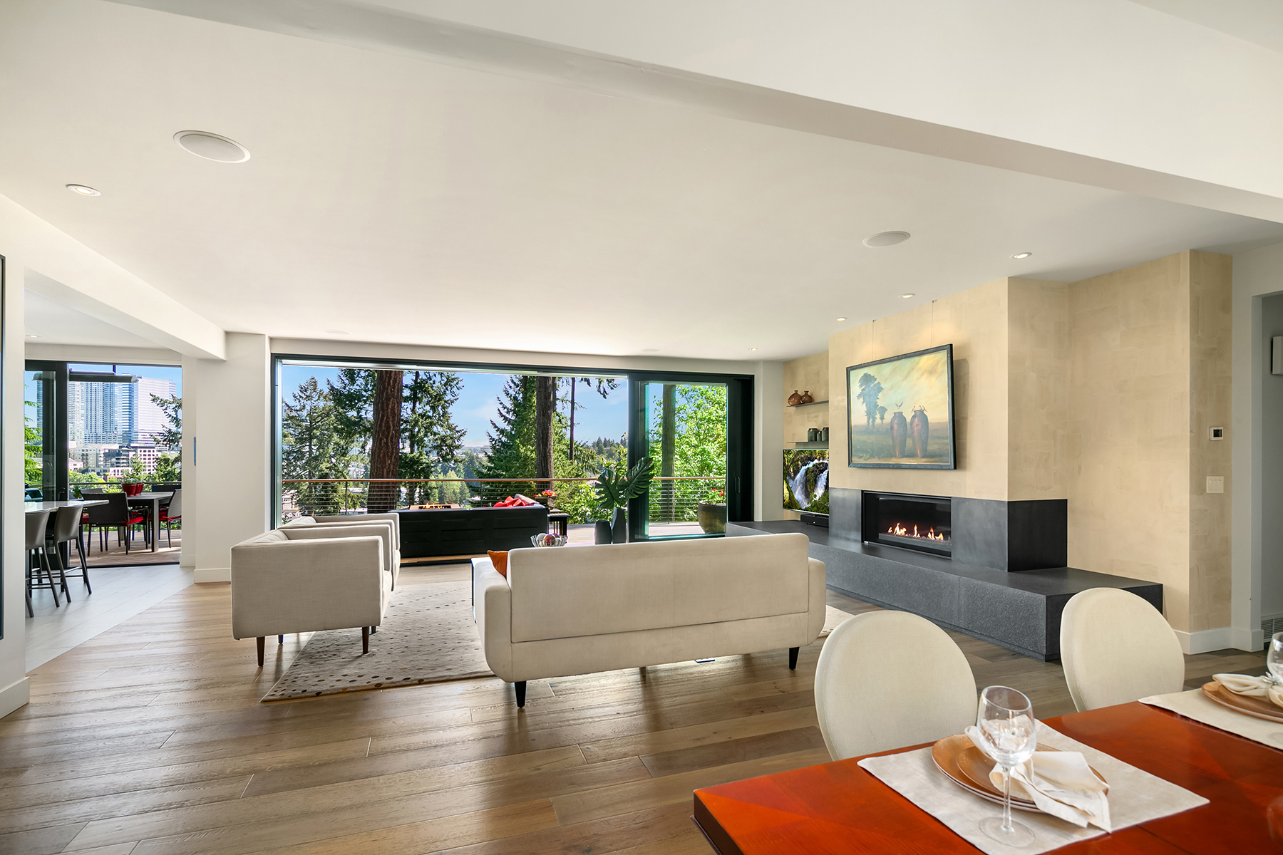 This six-bedroom home was remodeled in 2016 by McClellan Architects into a modern home that feels like a treehouse with modern seclusion and yet is located within walking distance to Old Bellevue.