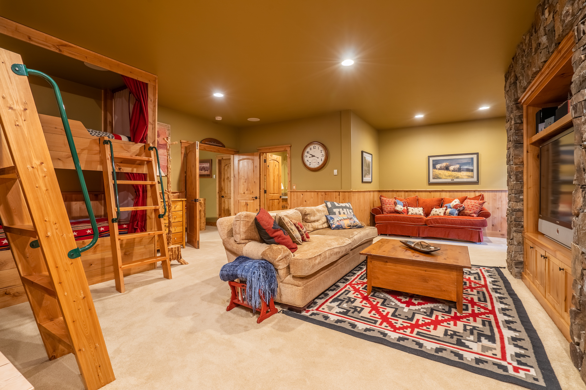 The stylish bunk room welcomes guests.