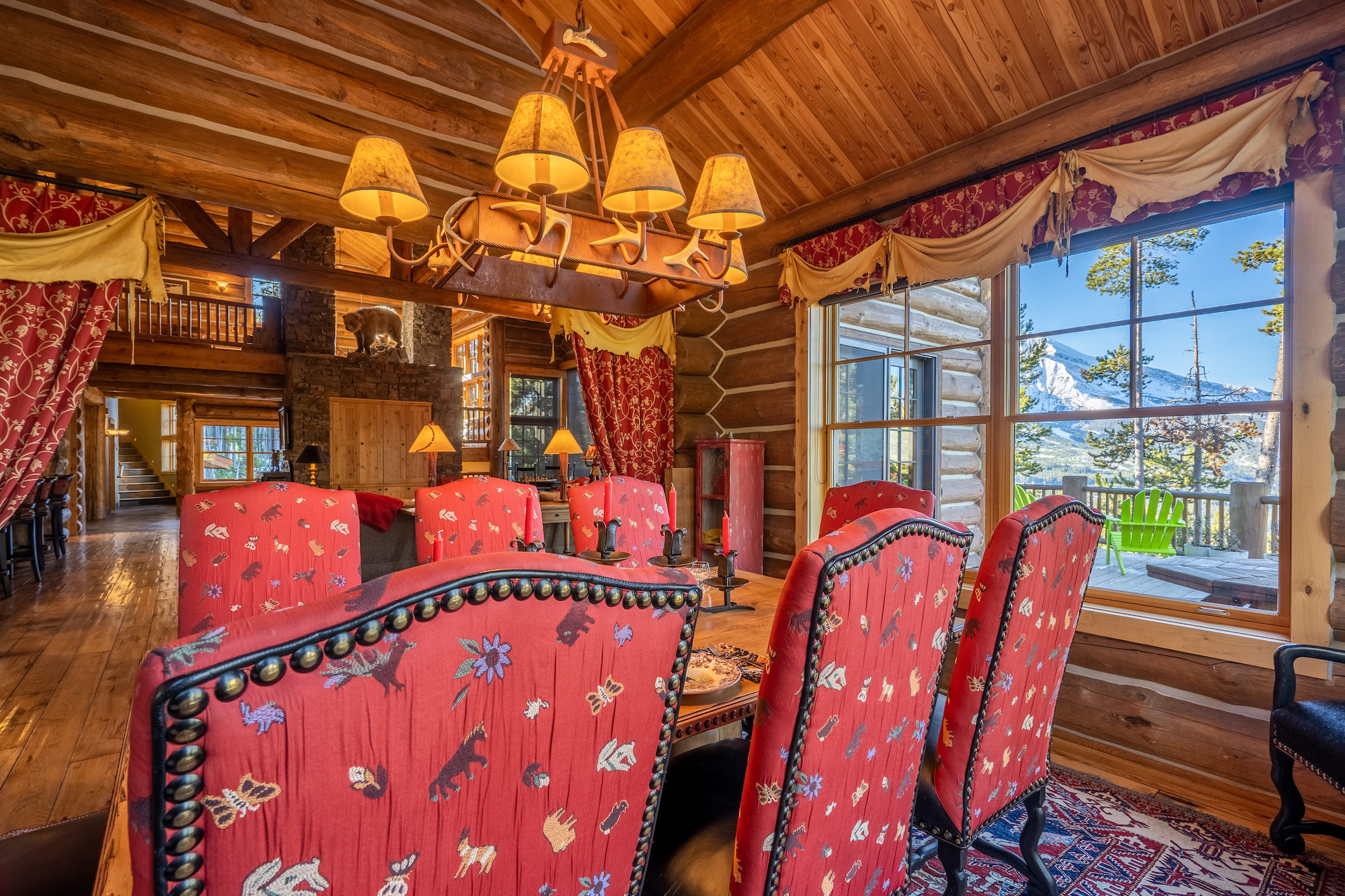 Large windows frame mountain views.