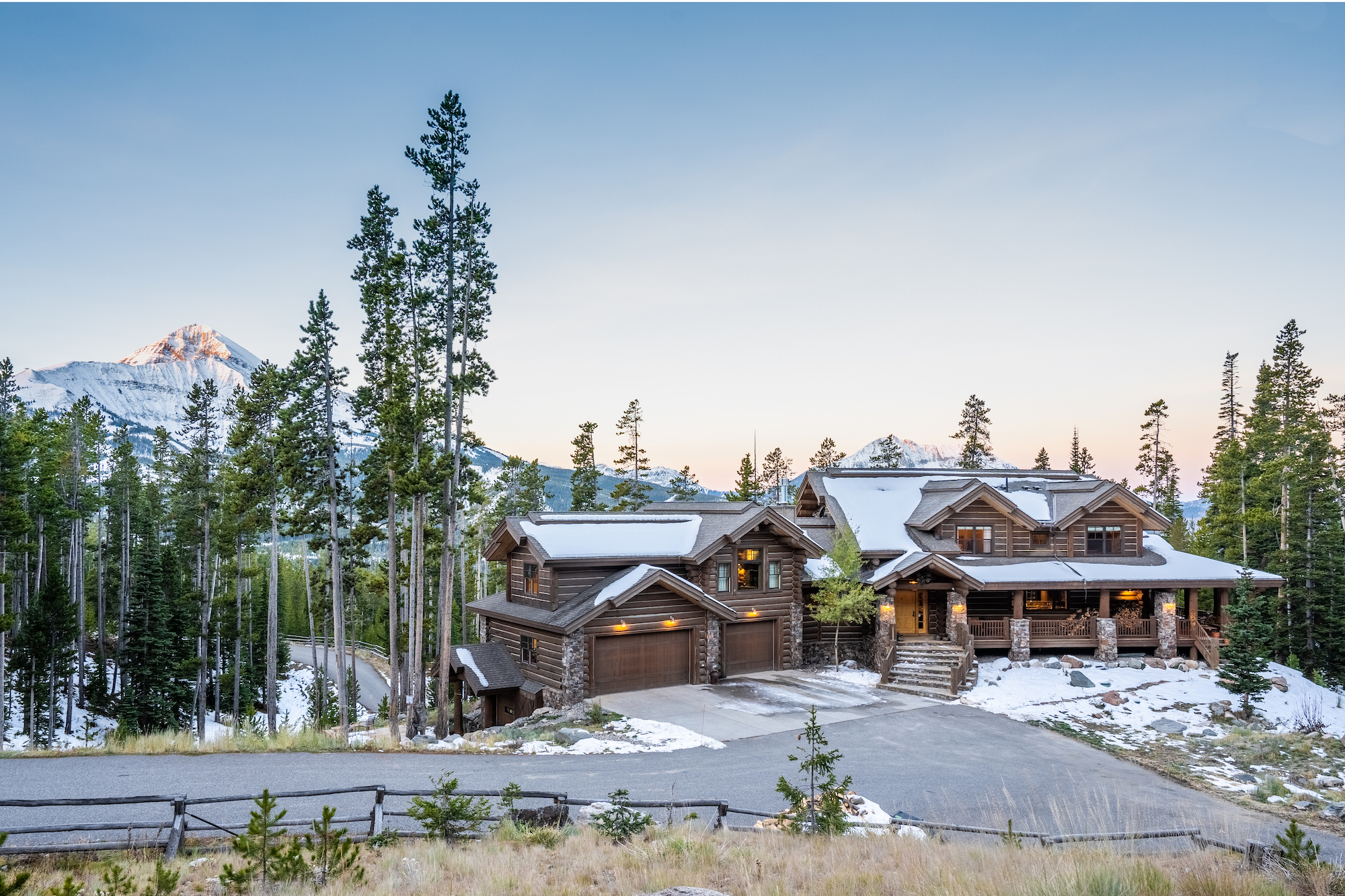 This over 20-acre property includes a custom lodge-style log home and guest cabin with a private fishing pond and spectacular views across Moonlight Basin to Lone and Fan Mountains.