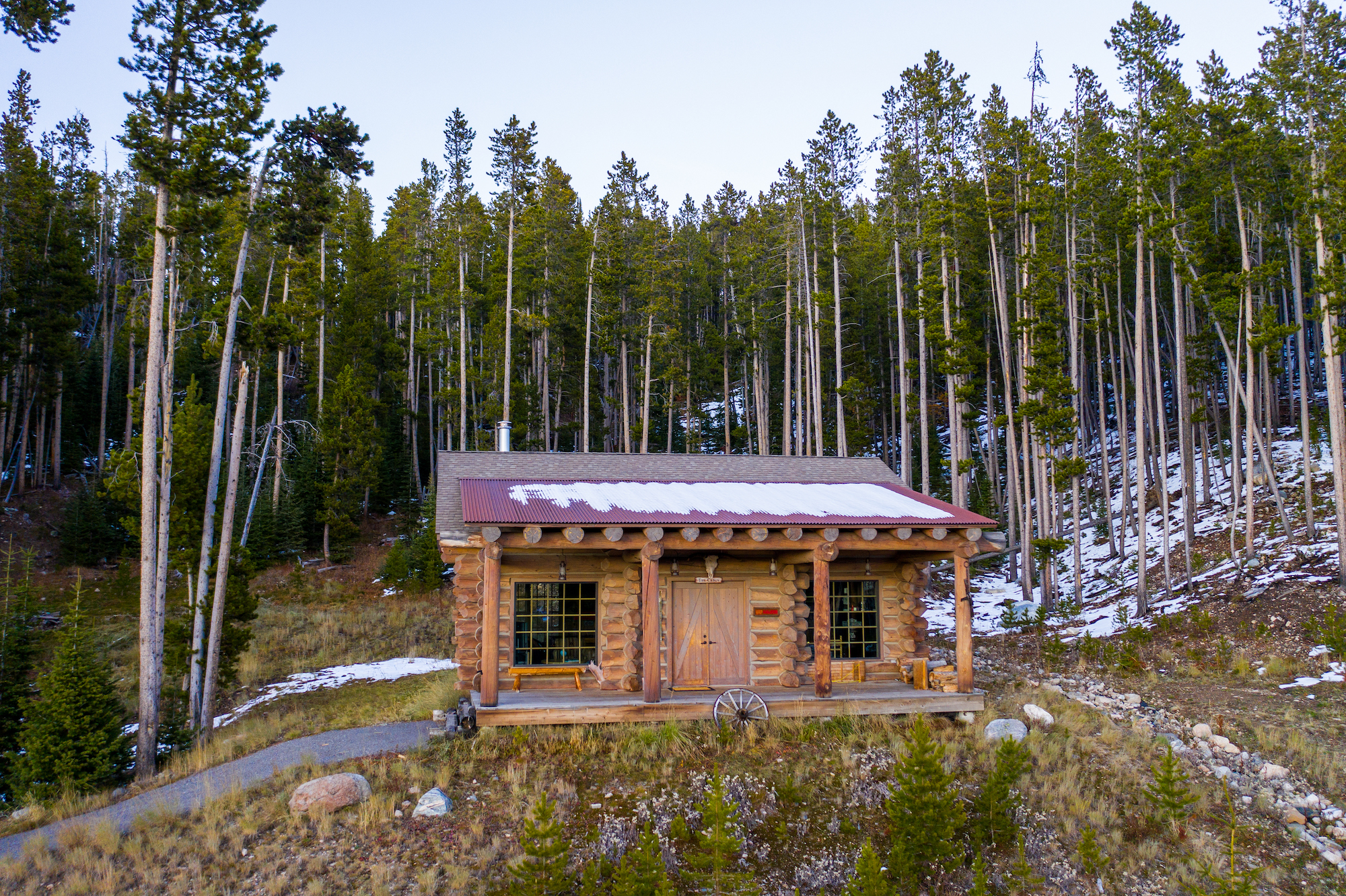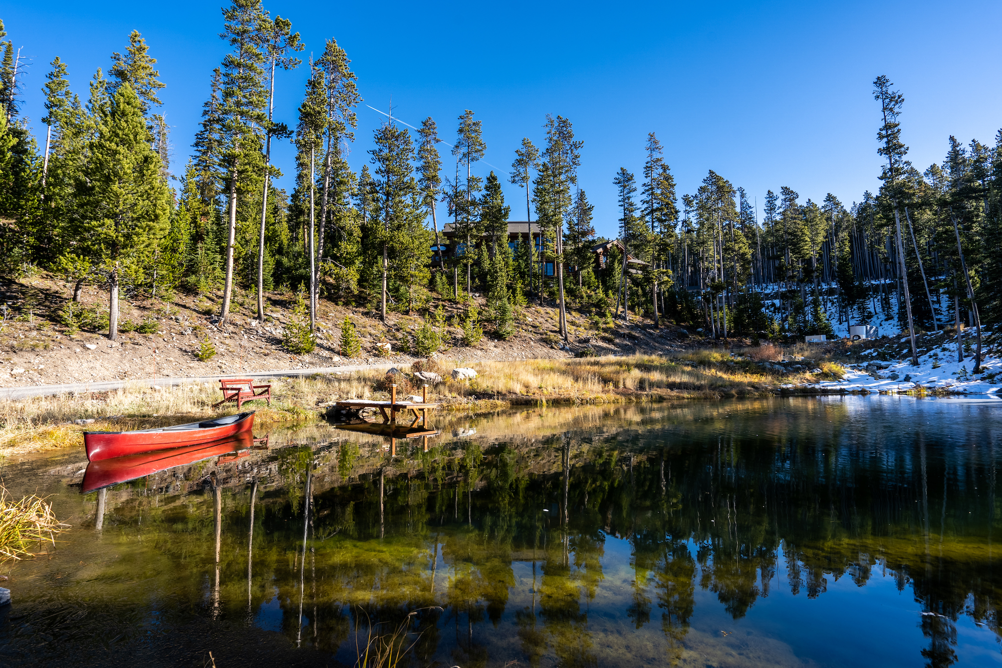 A large deck overlooks the private pond, which beckons the wildlife including moose, elk, deer, and waterfowl.