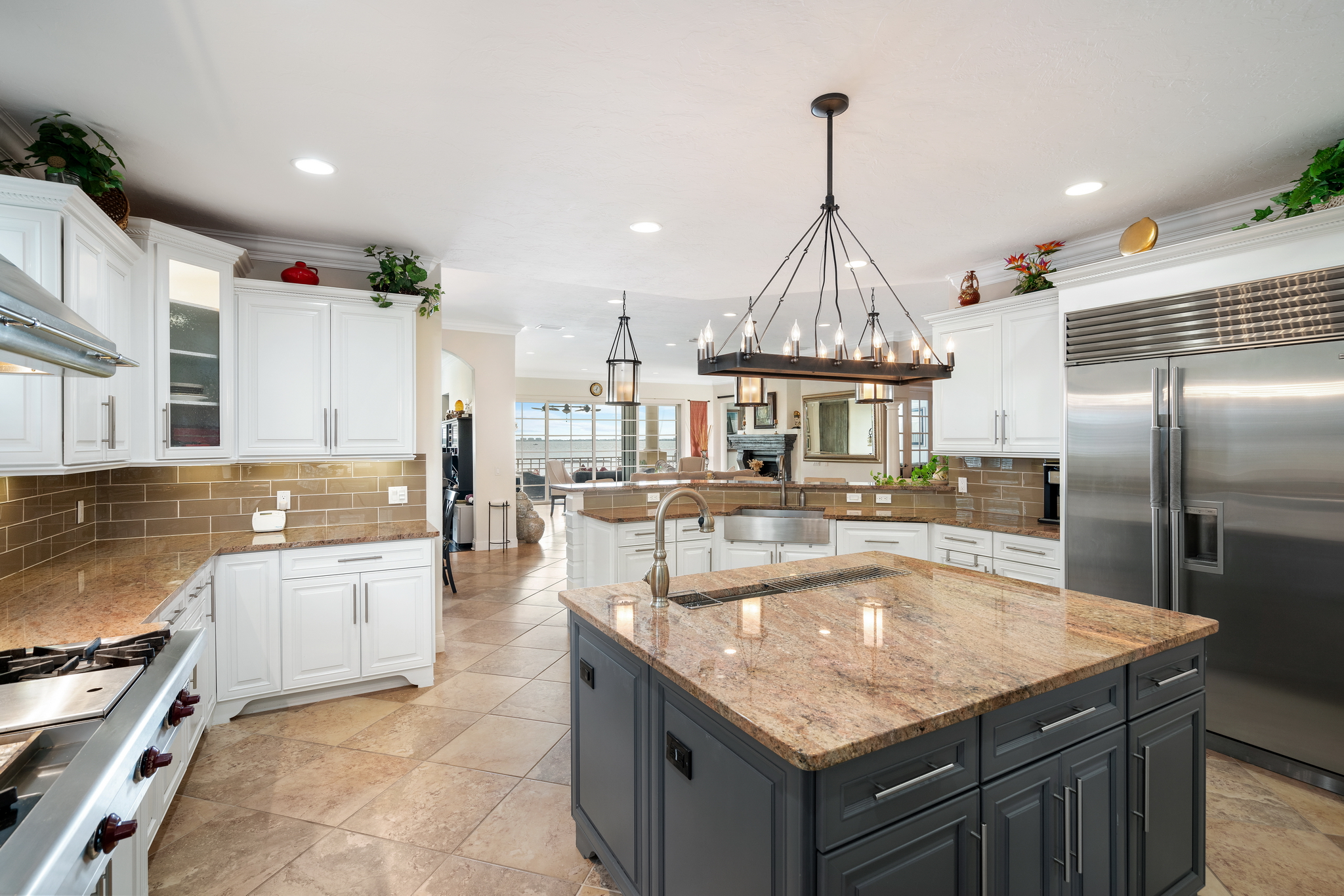 The views take on a new level of magnitude in the winter months when white pelicans who have migrated south take up residence behind the house. The waterfront resort-style pool area is enhanced with a heated saltwater pool and spa and coveted green space.
