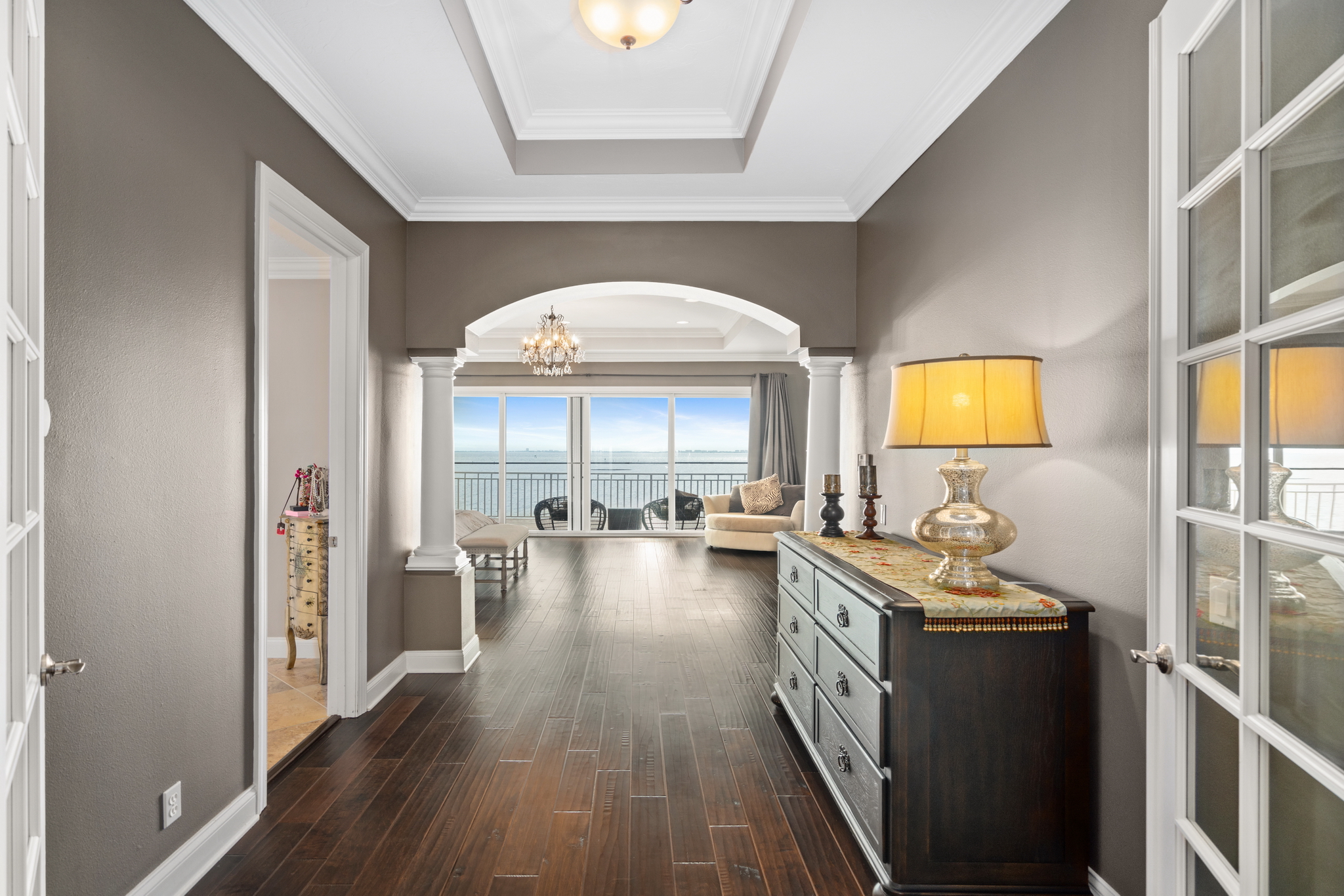 Waterfront splendor meets elegance and grandeur in this four-bedroom home in Bradenton, Florida where beautiful south-facing views of downtown Sarasota, the Ringling Bridge, Lido and Longboat Keys are showcased from nearly every room.