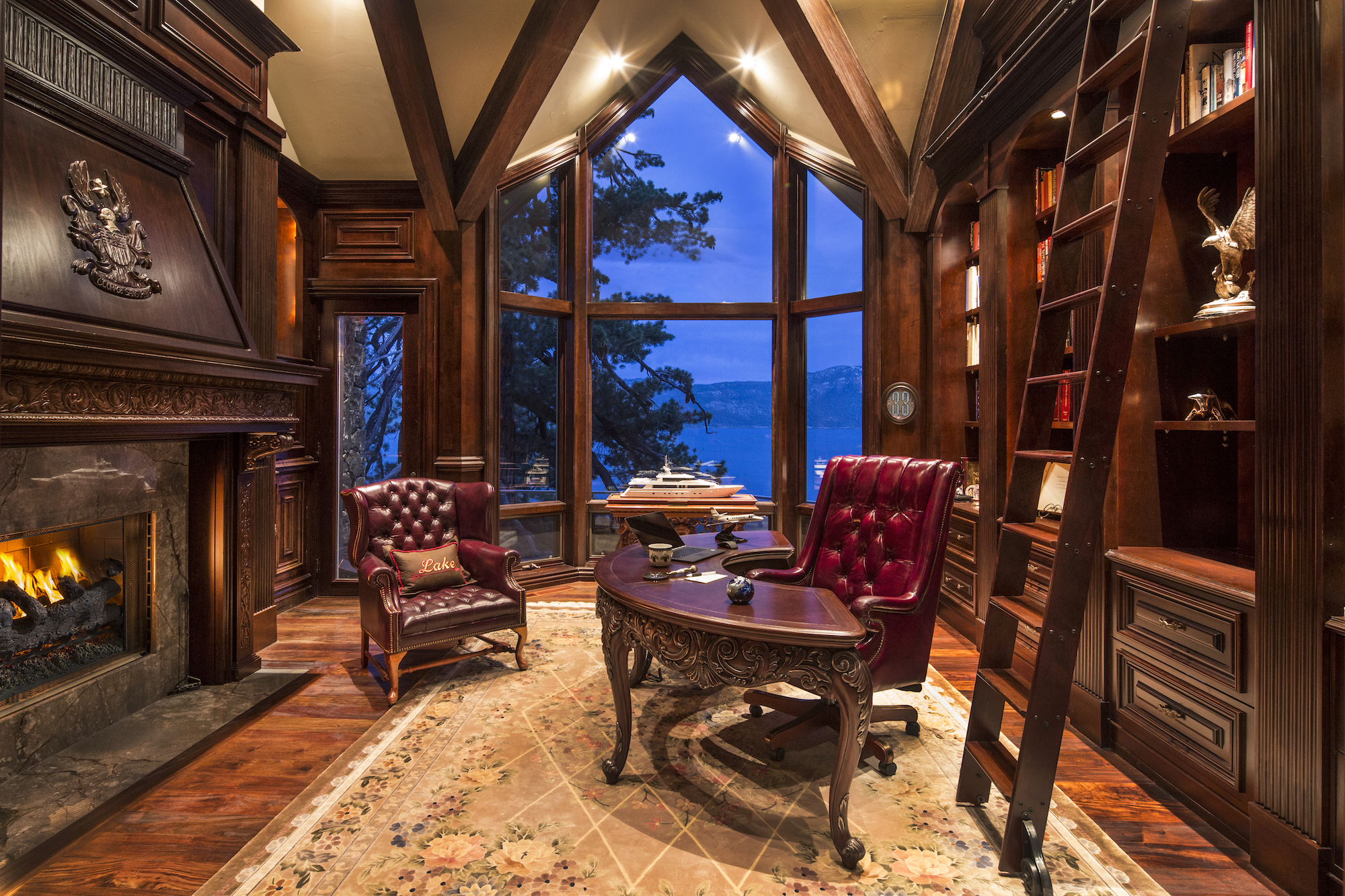 The sellers spent years constructing a masterpiece that has stunning views and rich wood built-ins.