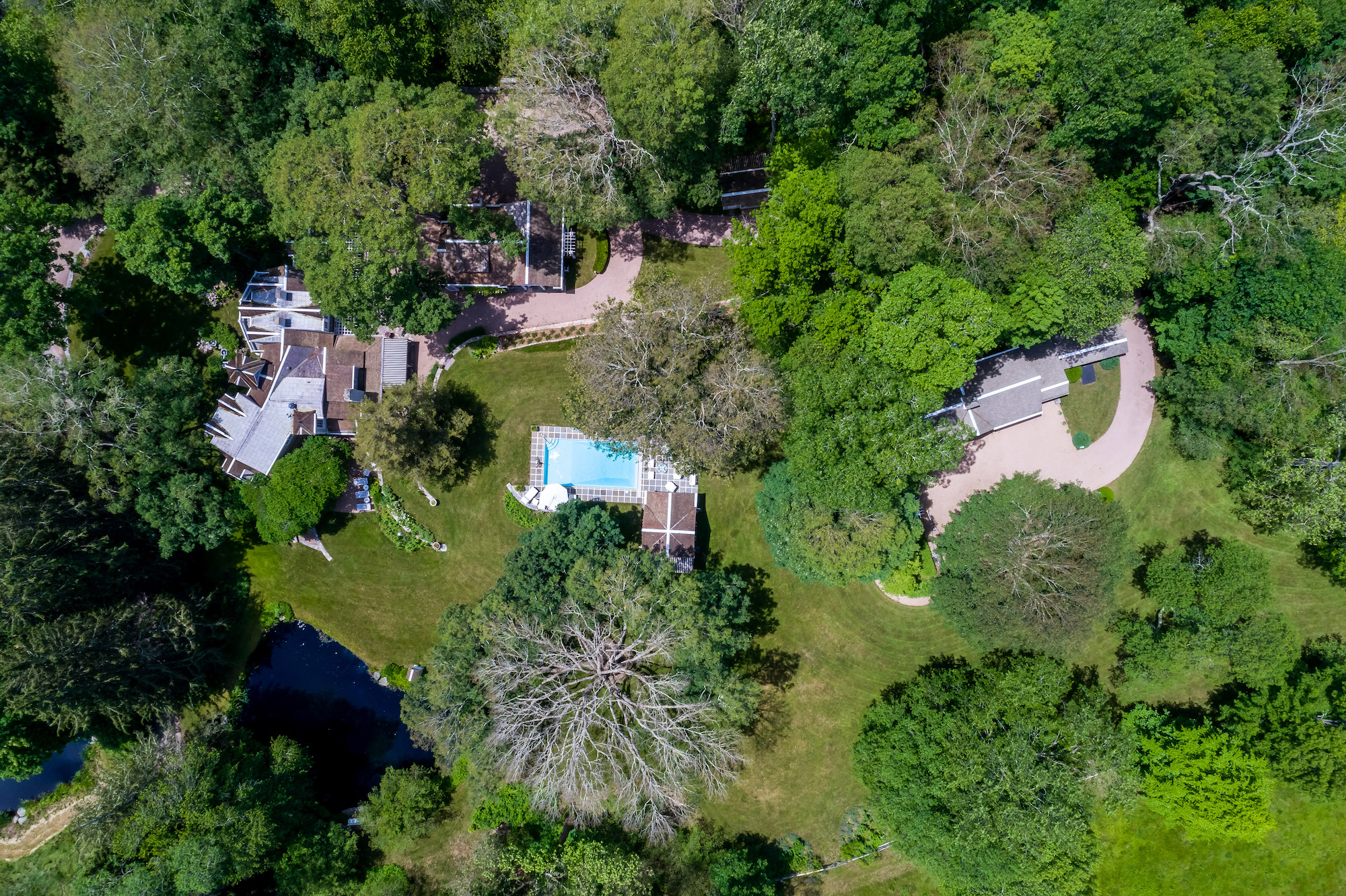 This over 24-acre estate in East Haddam, Connecticut was formerly owned by Katherine Hepburn’s first cousin Betty Marter, heir to the Boston’s Houghton Mifflin publishing empire. Ms. Marter was a naturalist and a spy in Paris during World War II.