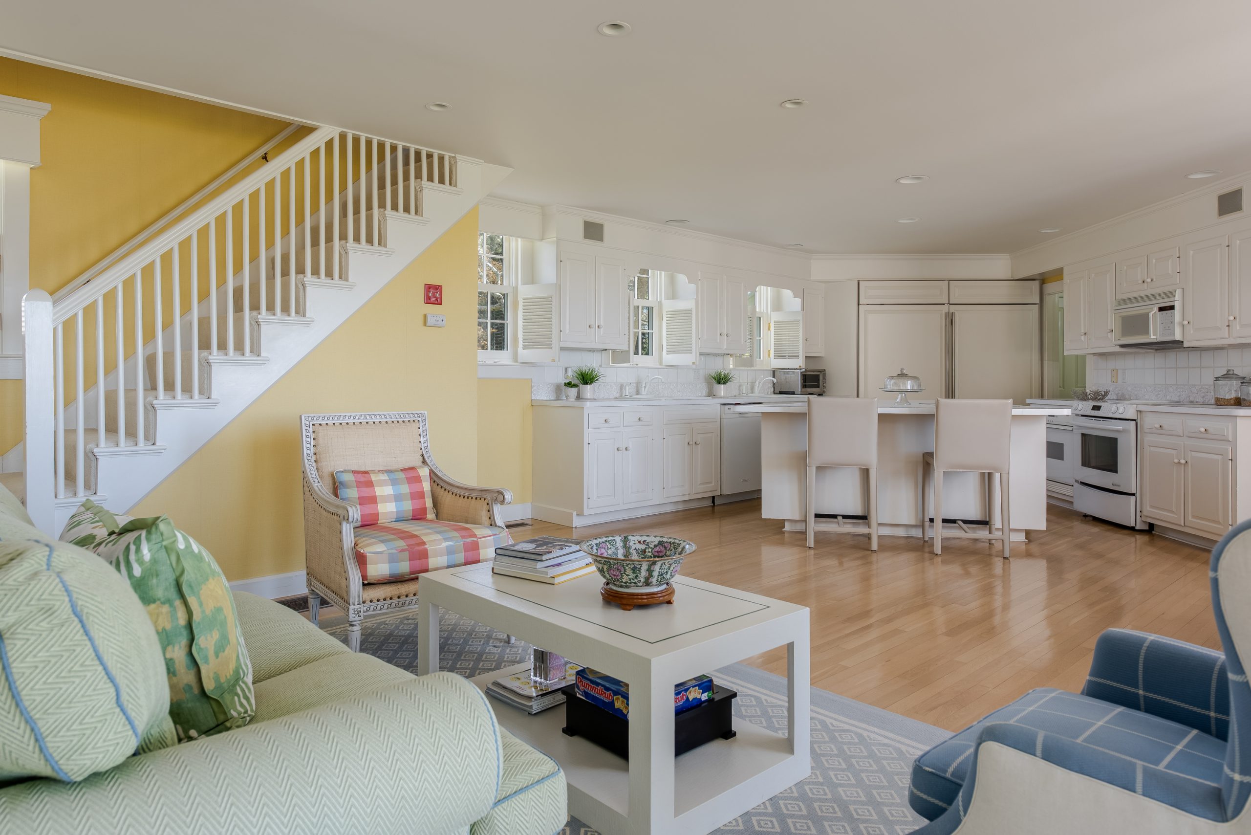 A detached carriage house with garage, two guest bedrooms, a full kitchen, bathroom, and a common area. This Oyster Harbors original is listed for $16.5 million with Robert Paul Properties, an affiliate of Luxury Portfolio International®.