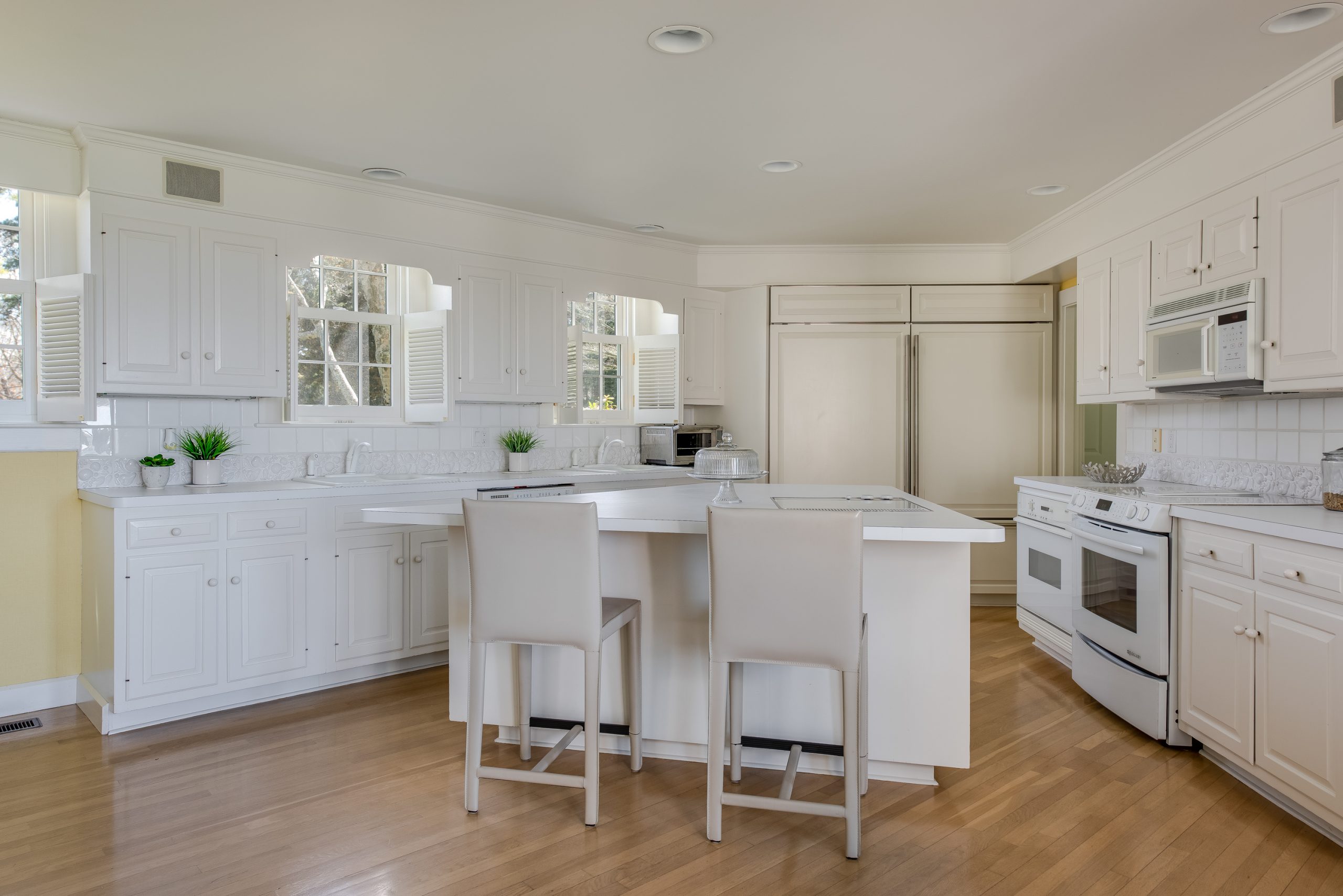 Through a classic butler’s pantry with a sink and shelving is a large, open concept kitchen with a commercial-sized refrigerator, island, first-floor laundry, and casual TV/family room with a breakfast nook. A set of back-stairs provide easy access to the second floor.