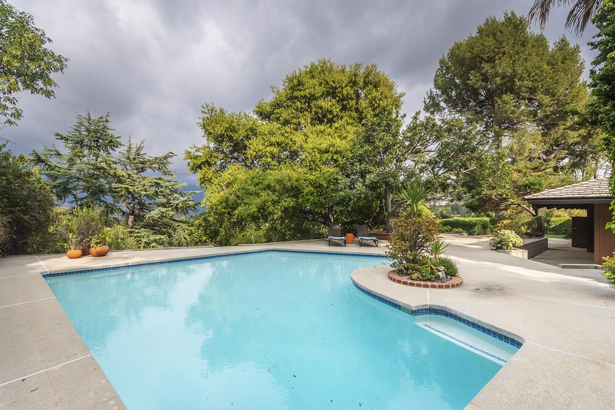 This spacious private oasis offers a geometric free-form pool and has an attached 2-car garage, and pool cabana. It is listed for $1.725 million with Dilbeck Real Estate, an affiliate of Luxury Portfolio International.