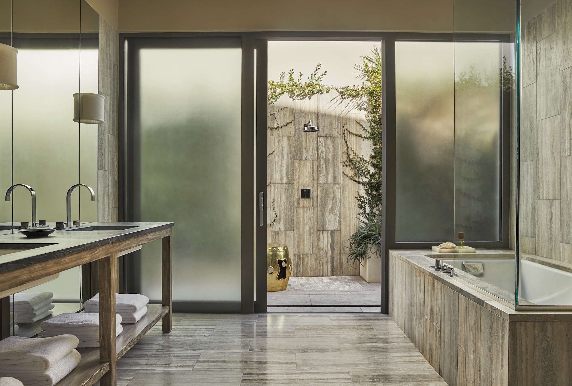 A few outstanding features include private beach access, custom-designed Kelly Wearstler furnishings, and accessories, an infinity pool, as well as an outdoor shower and oceanfront terrace with views overlooking the secluded Barnes Bay Beach.