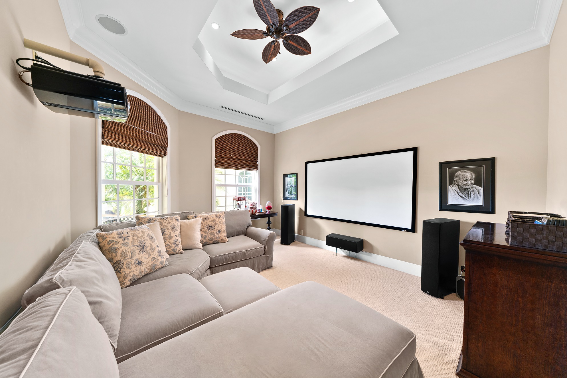 Hurricane impact windows and a Bermuda roof safeguard the home in the event of a storm while a 20,000 gallon in groundwater cistern and full house standby generator allow the residents to weather a storm in comfort.