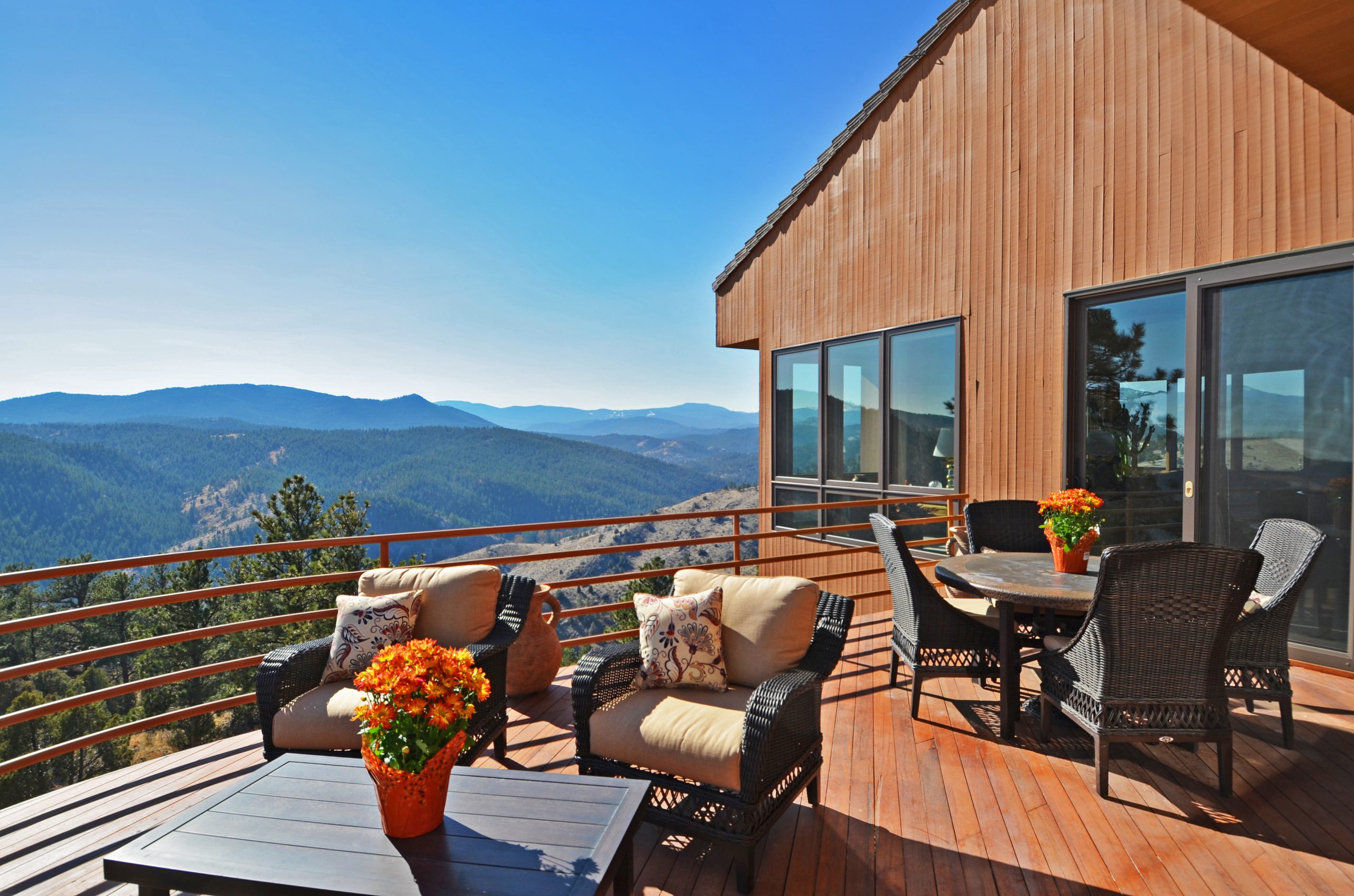 This beautiful custom Genesee home is situated on 9.77 acres in Golden, Colorado offering unobstructed Mt. Evans views as well as sparkling views of the city at night.