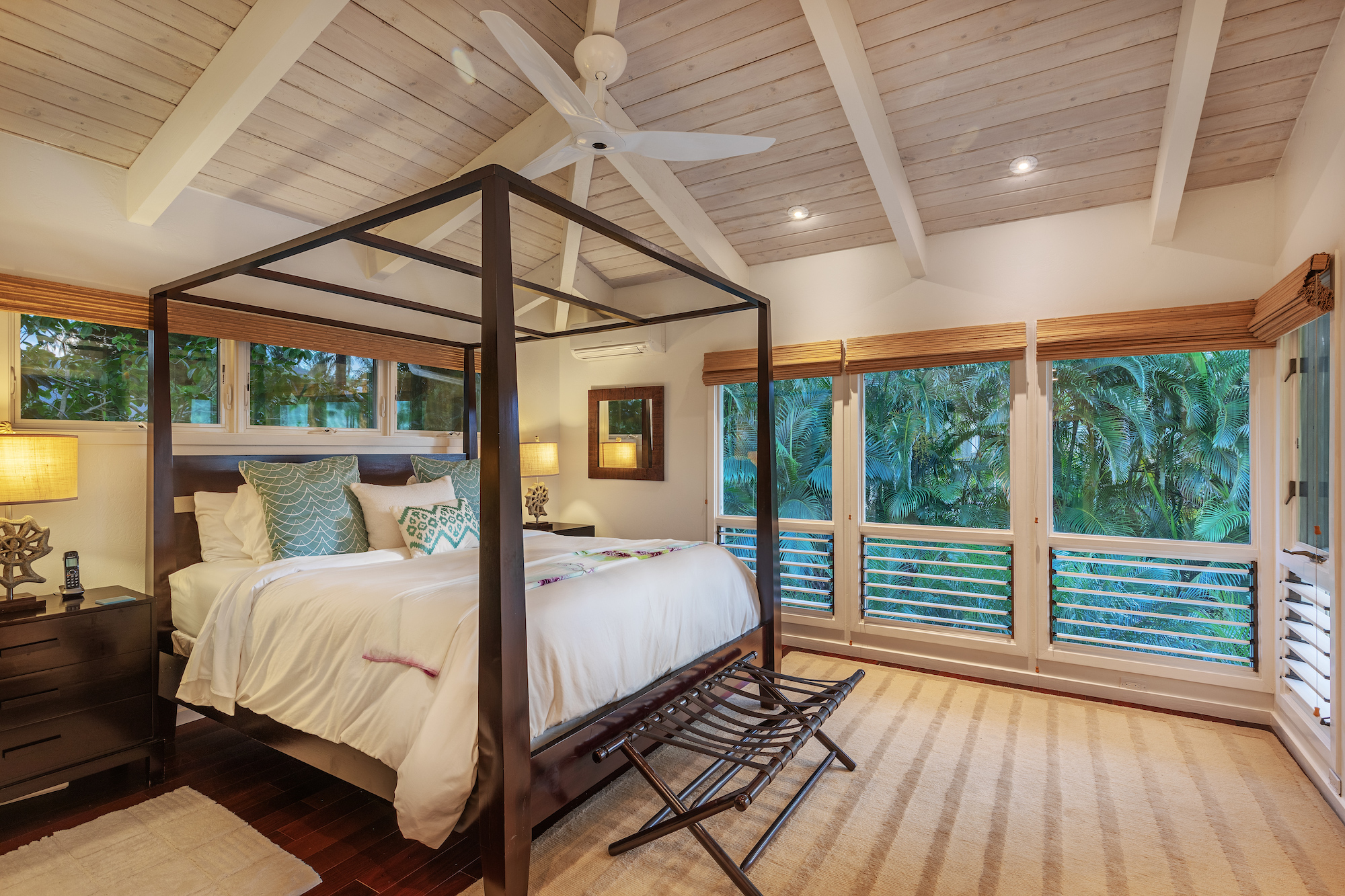 Situated in one of the most desirable locations on Hanalei Bay, on a large 1.1-acre lot, this spacious beachfront home has unsurpassed views of the crescent arch of the Bay, breaking surf, majestic waterfall-clad mountains, and the setting sun.