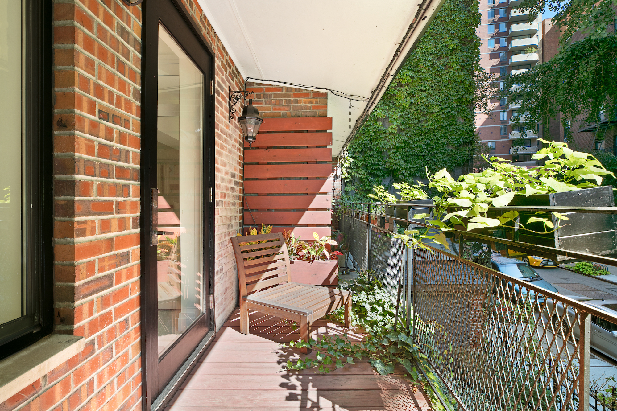 With a wrought iron gate, landscaped front garden and second-floor terrace set against a red brick facade, this home is as fashionable as its owner.