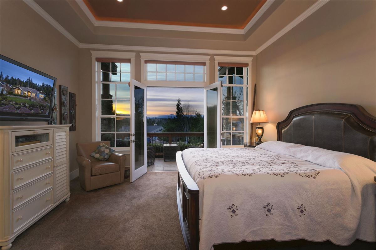 The gracious main floor master suite features French doors leading to a private patio. The master bath offers a jetted tub, gorgeous walk-in shower with multiple shower heads, double vanities, and even an exercise room. Enormous master closet has a private laundry, and plenty of storage.