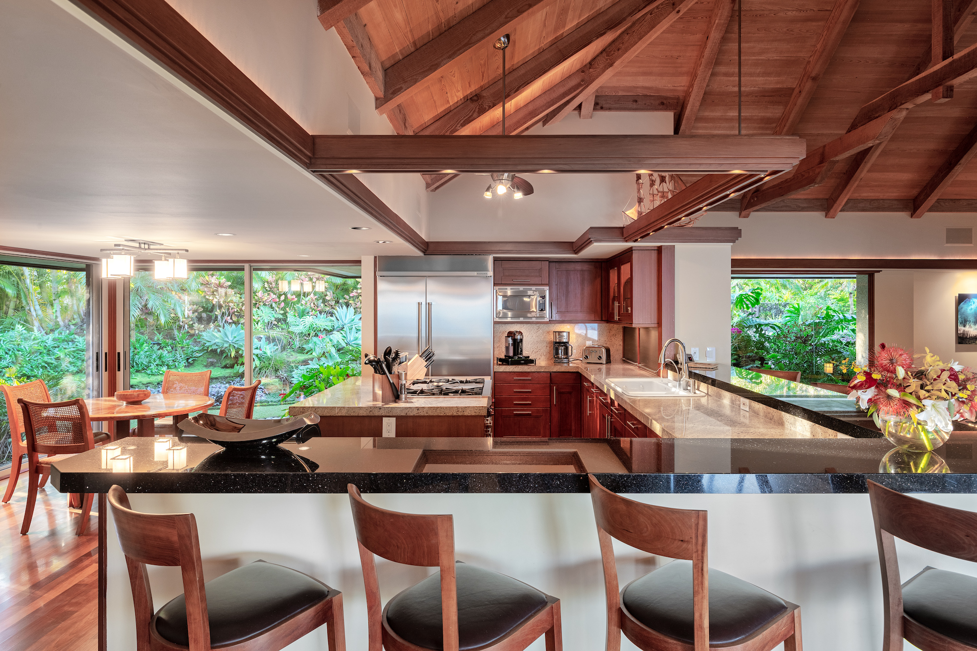 Today’s home is located in one of the most desirable locations on the North Shore of Kauai, tucked away from the crowds at the end of a quiet and private cul-de-sac.