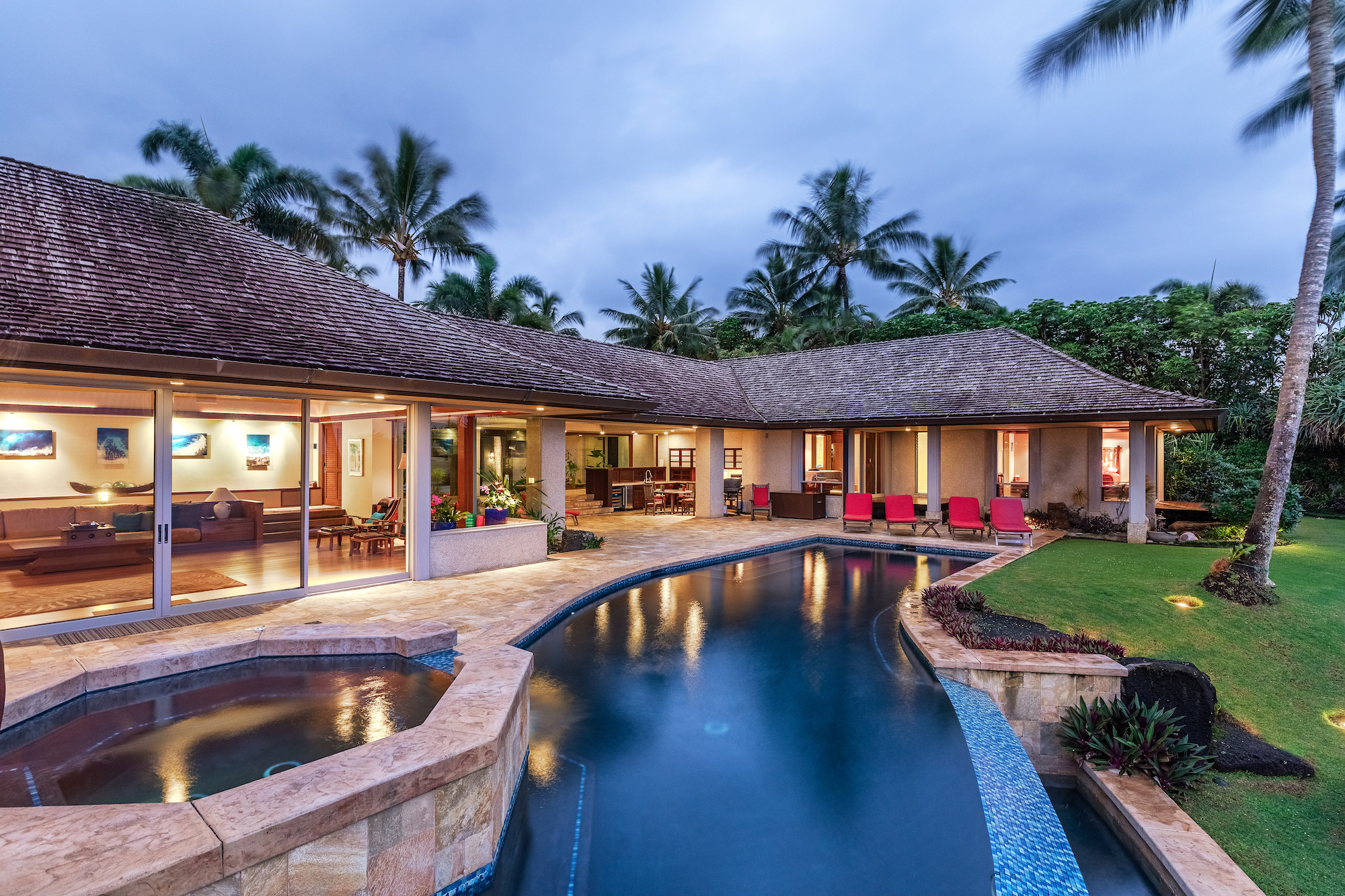 A beautiful pool and spa is part of an expansive entertaining area. This home is listed for $8.9 million with Hawaii Life Real Estate Brokers, an affiliate of Luxury Portfolio International®.