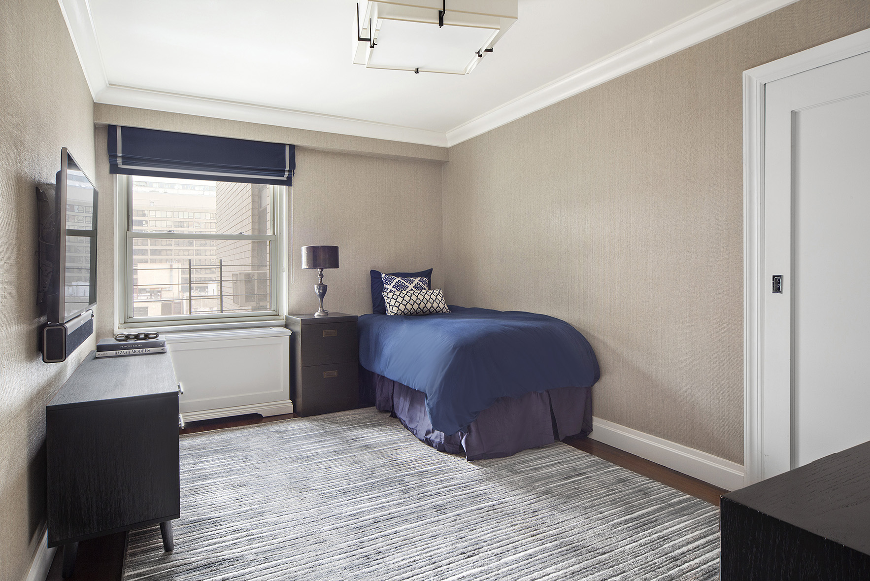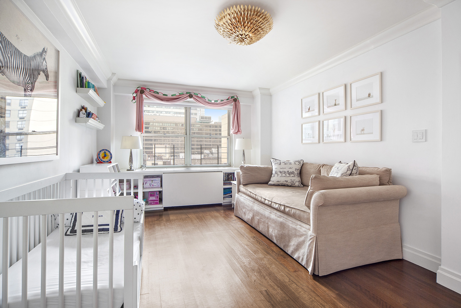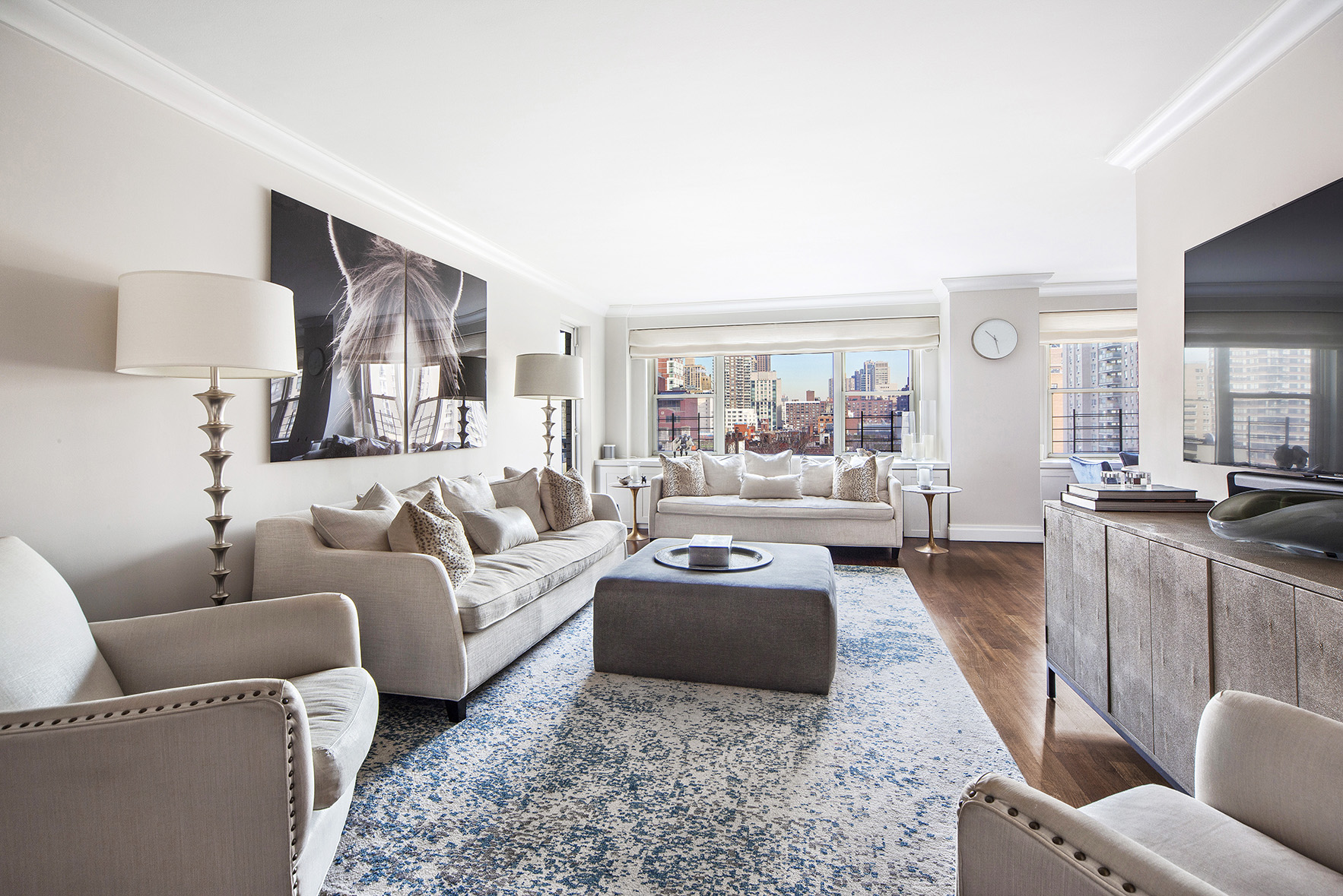 The apartment has a sprawling layout and gracious room proportions. The living room is bright and airy framing a perfect cityscape.