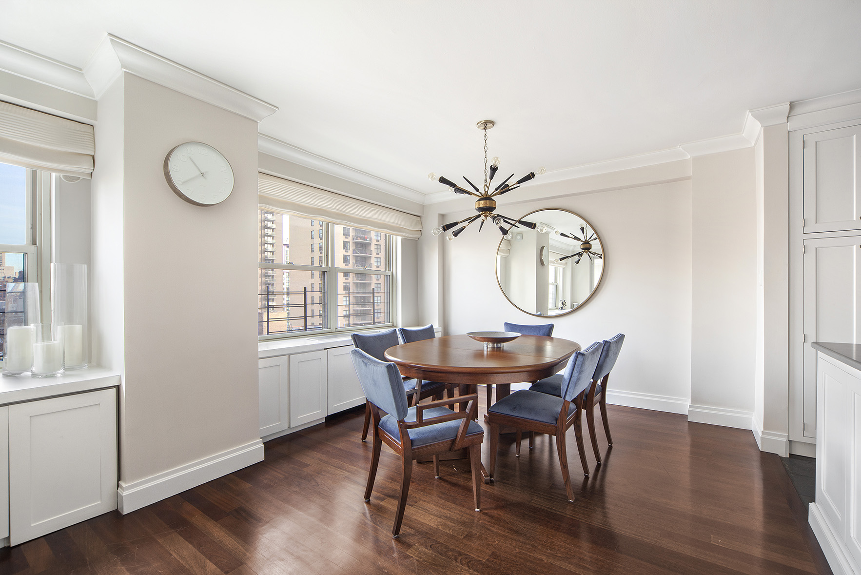 The building amenities include a full-time doorman, resident manager, laundry room, and on-site parking. This unit is listed for $2.075 million with Jason Haber and Nicole Durosko of Warburg Realty.