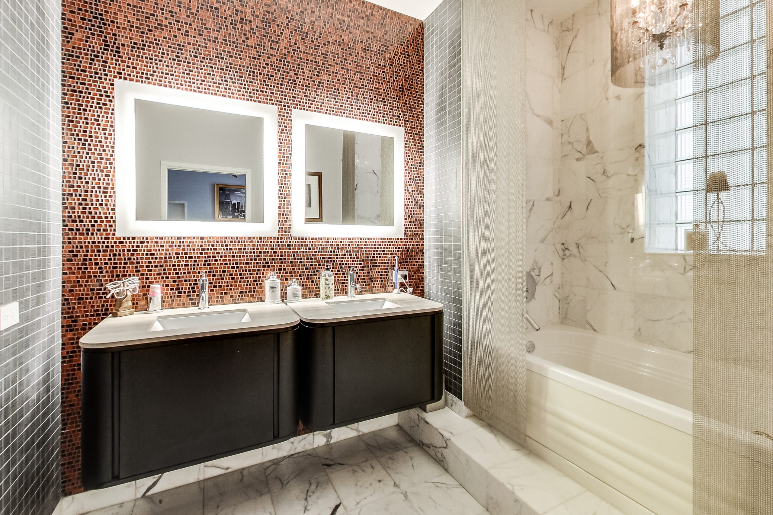 The condo features four bedrooms (three ensuite), three and a half baths plus sitting room or office with stunning finishes.