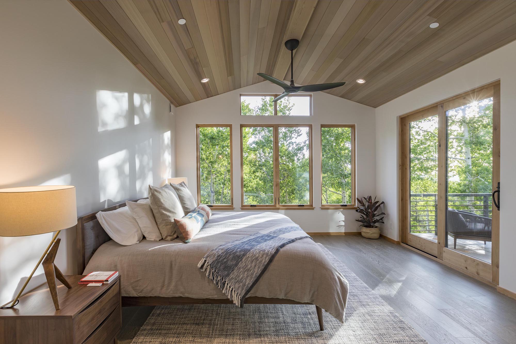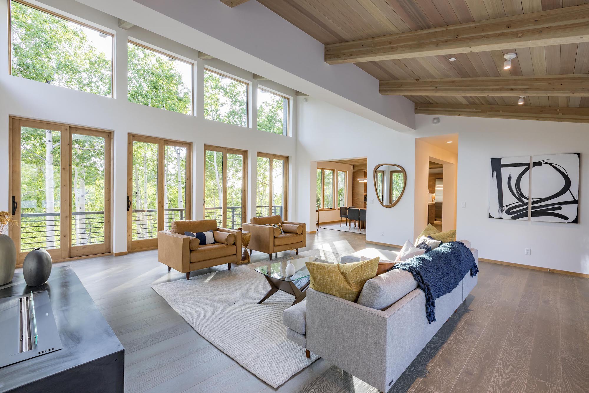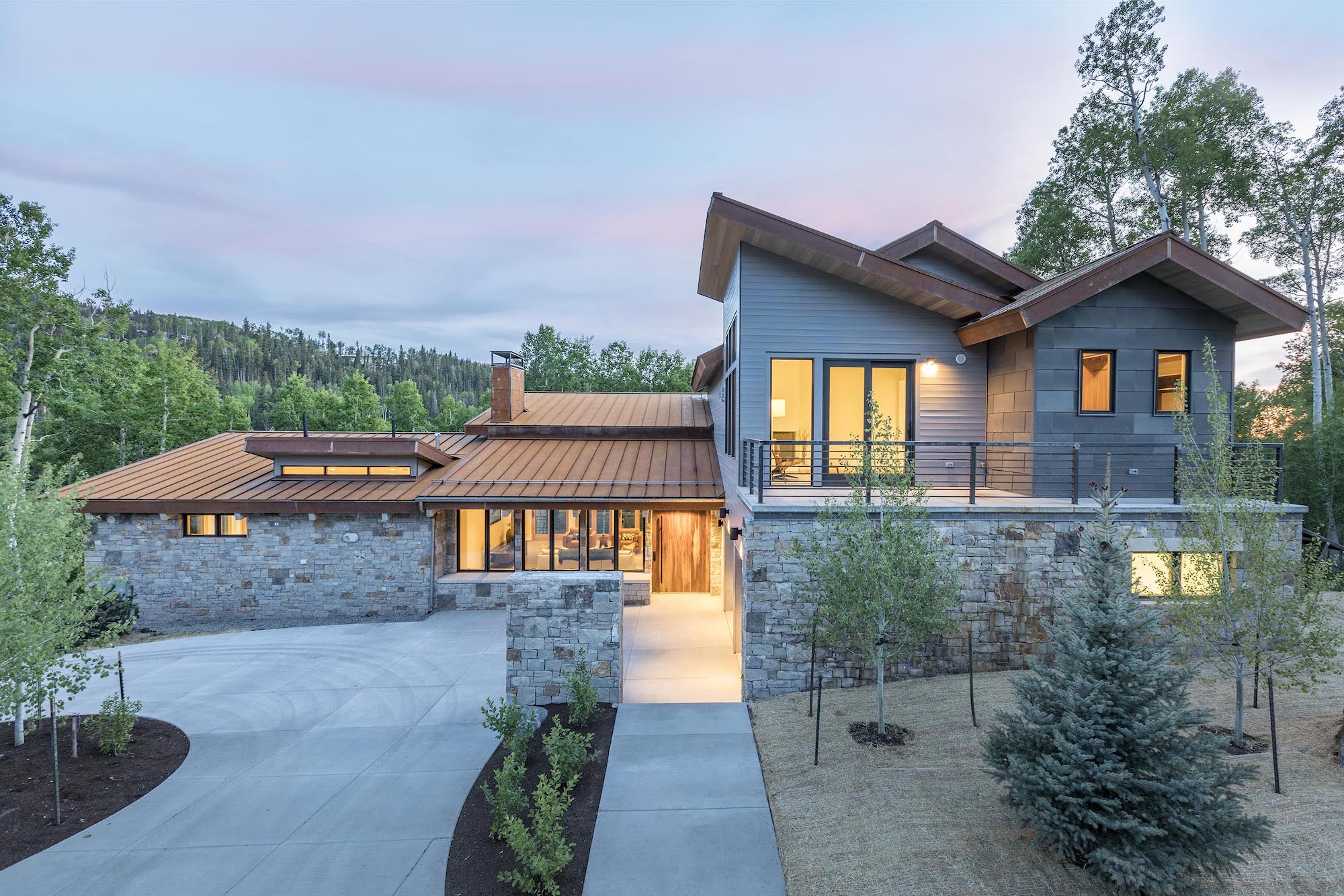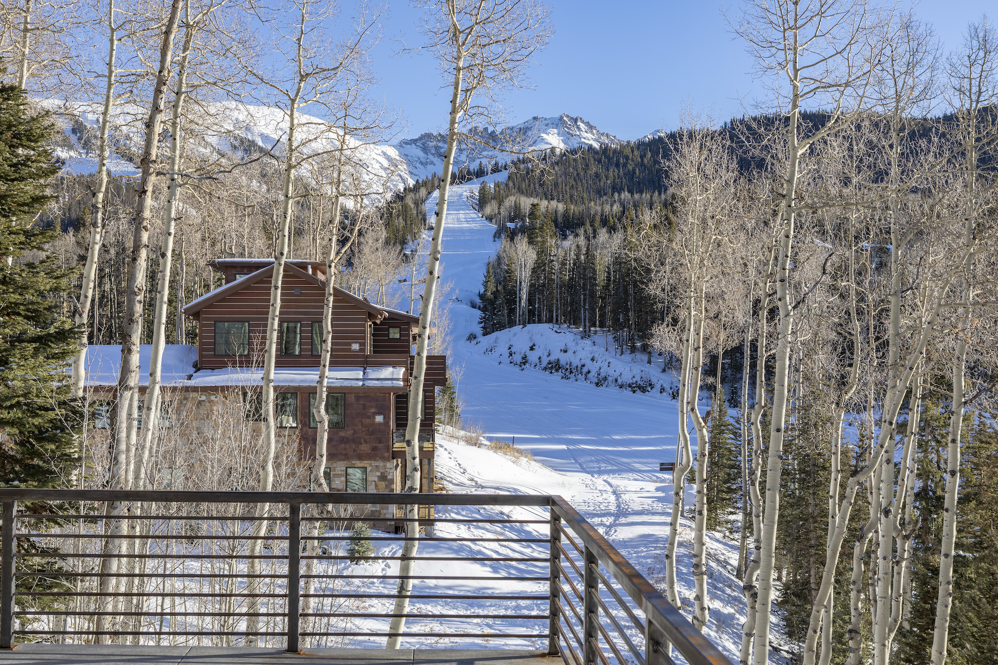 Set within a mature stand of shimmering Aspen trees, this newly completed custom residence is located slope-side along the groomed Sundance Trail.