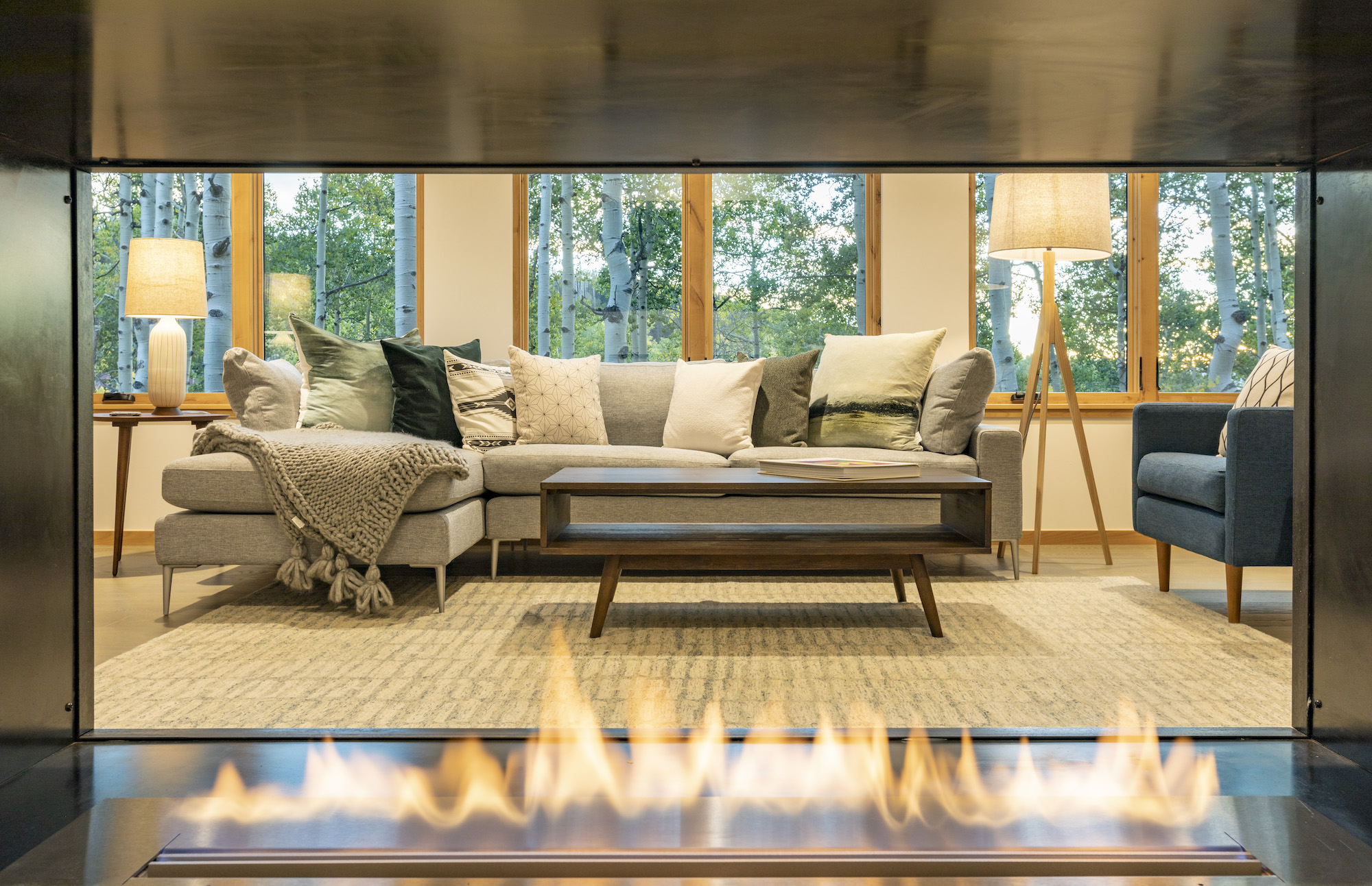 Multiple living spaces are enhanced with ‘green-energy’ ventless fireplaces.