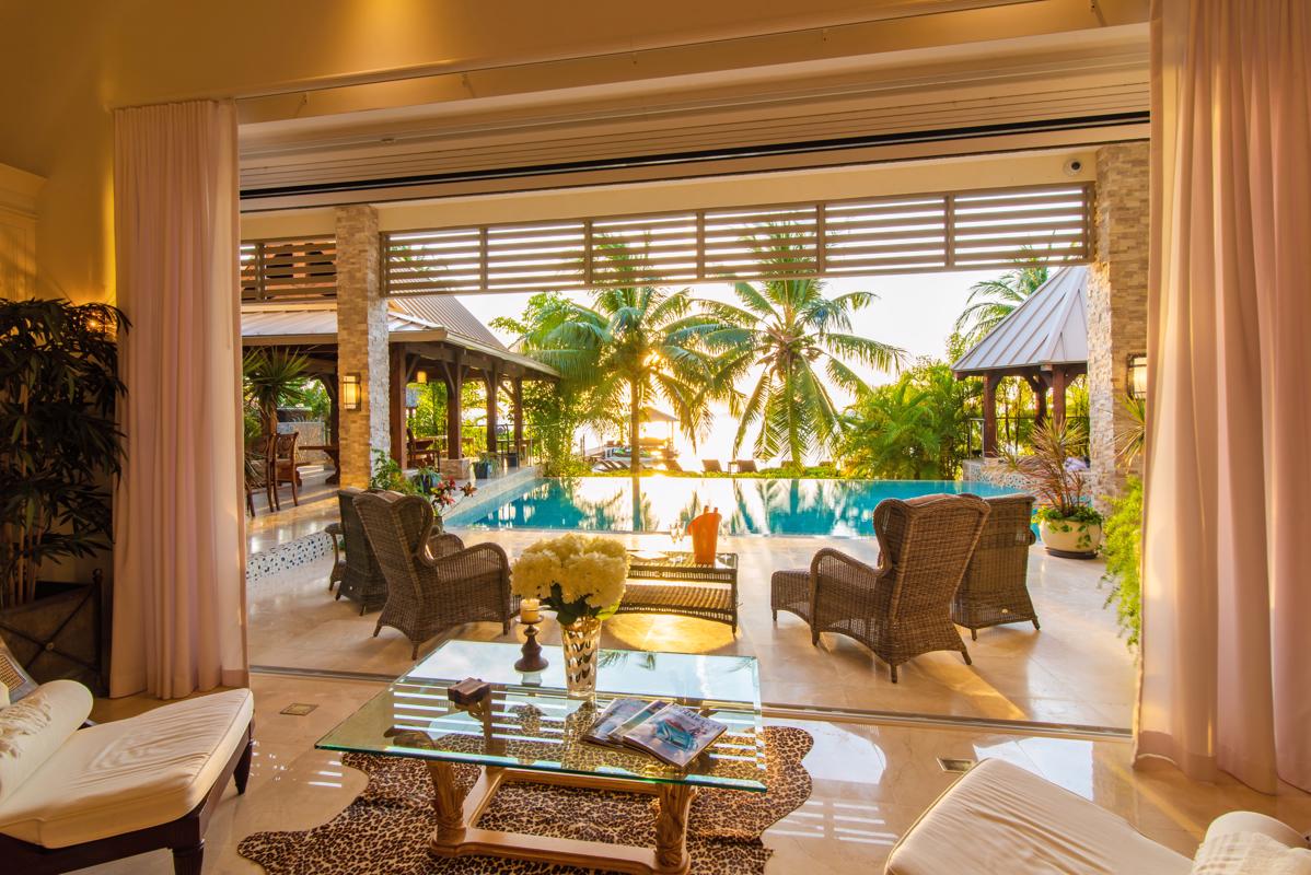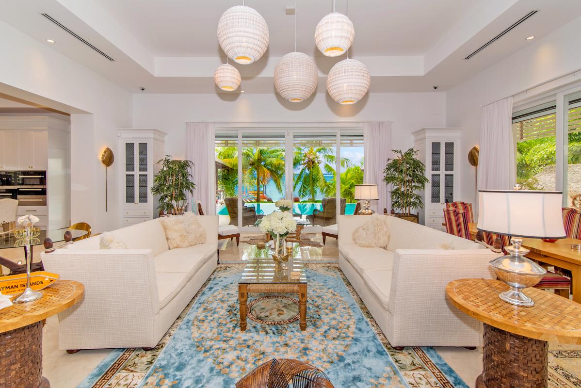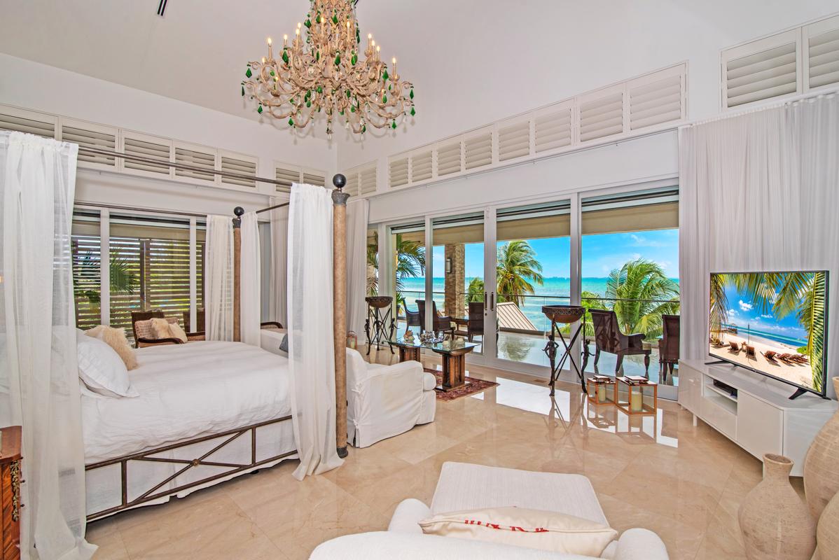 Paradise is nothing without someone to share it with. This six-bedroom home on Grand Cayman offers plenty of room for that. This beachfront villa in Rum Point offers a retreat for friends and family. The property opens with ornate electric gates, hand-crafted in Africa, that welcome you to a gated courtyard with double garages either side with parking for 6-8 large vehicles. Above the garages are two guest apartment suites.