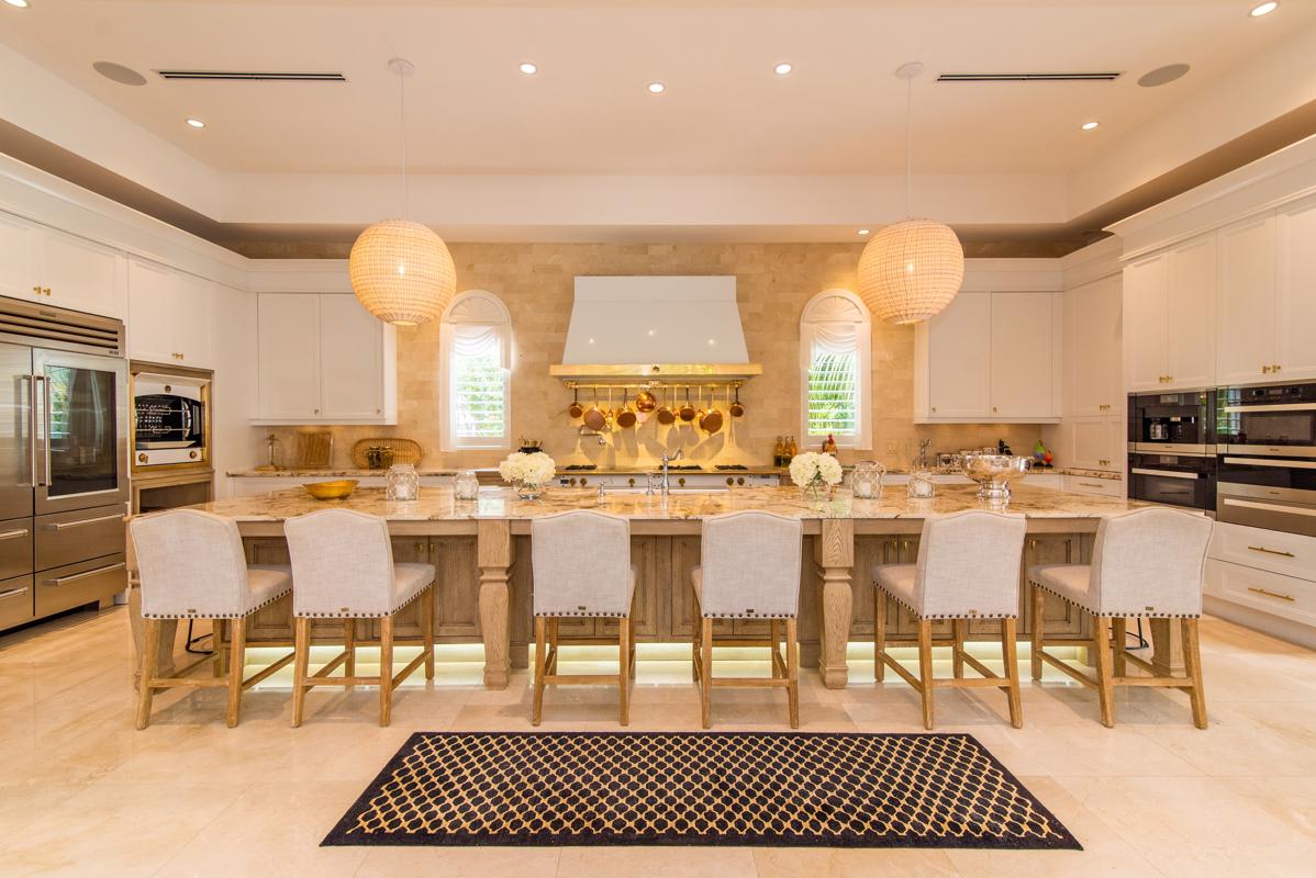 The kitchens are a gourmet chef’s dream with the main kitchen featuring a ‘La Cornue’ Rotisserie & Stove that is a “work of art” centerpiece. There is also a preparation kitchen and wine cellar and a fully equipped outdoor kitchen with warming chambers, ovens, grills and an outdoor pizza oven.