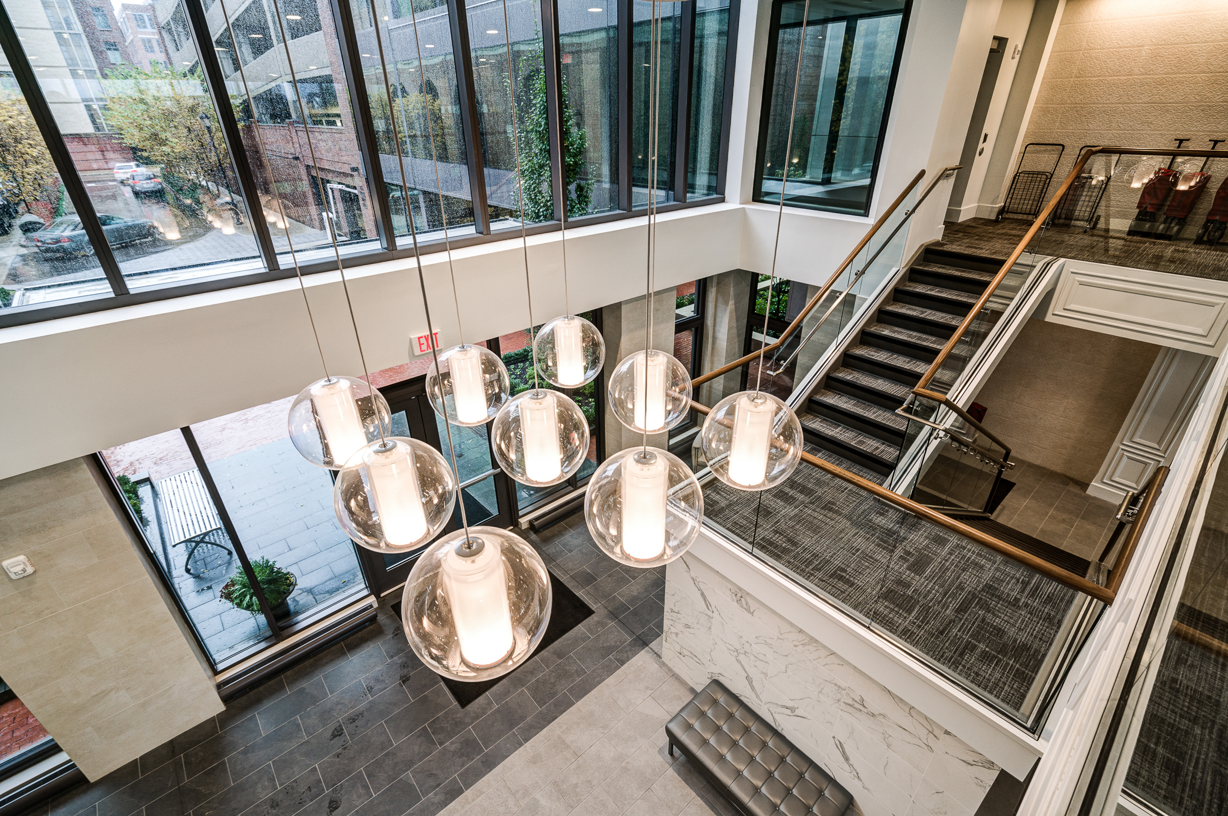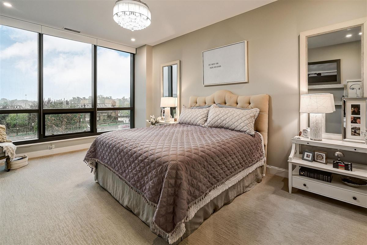 Complex amenities feature a pool, hot tub, fitness center, large lobby, catering kitchen, and the services of a 24-hour concierge.