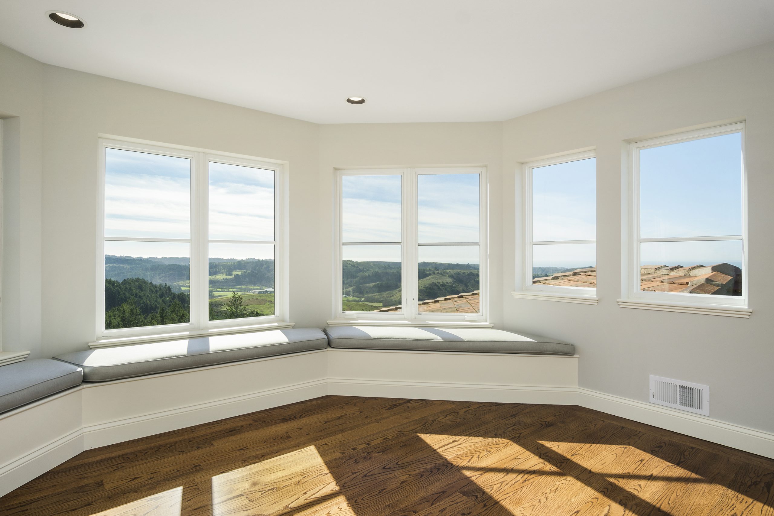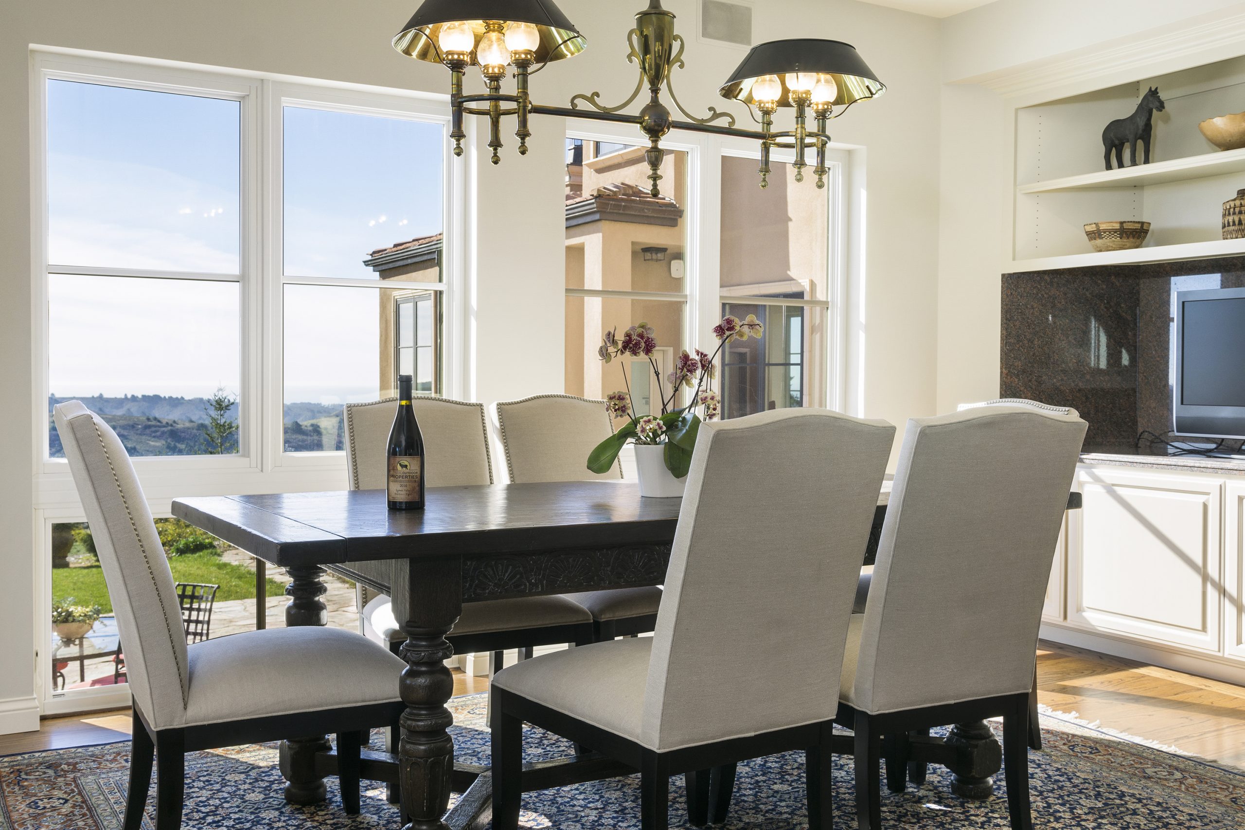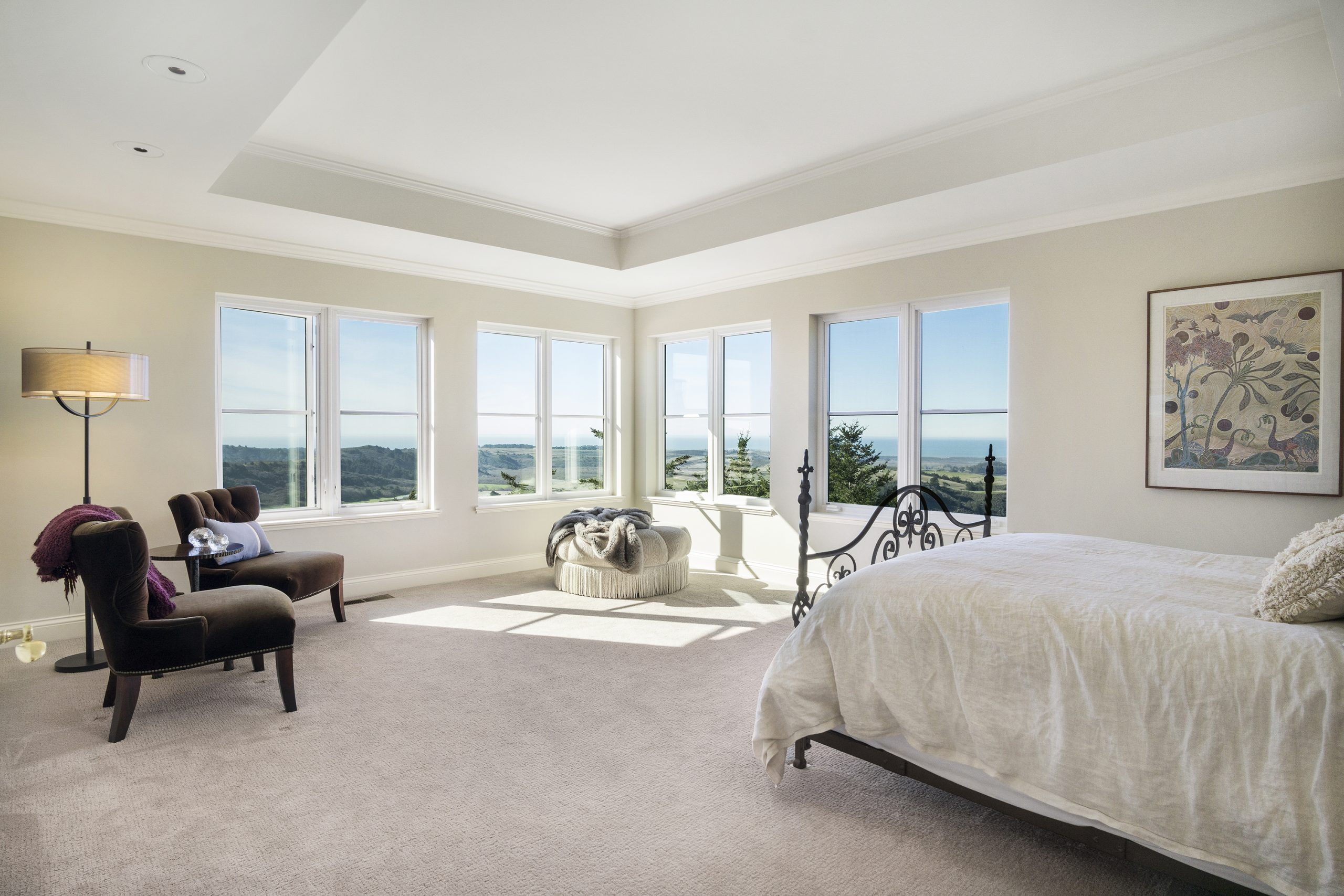 Gaze out to breathtaking views of where land greets the deep blue waters of the Pacific Ocean as sunlight streams through the expansive banks of windows.