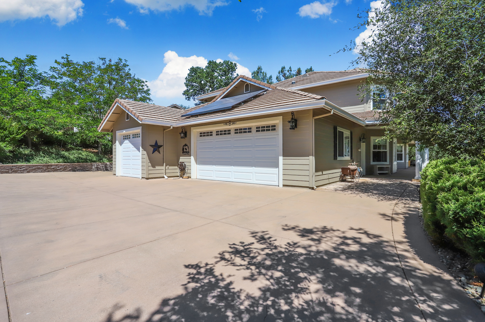 This peaceful estate is located on three acres in desirable, gated Greenstone Country, a private community in the Placerville Gold Country Hills of Northern California.