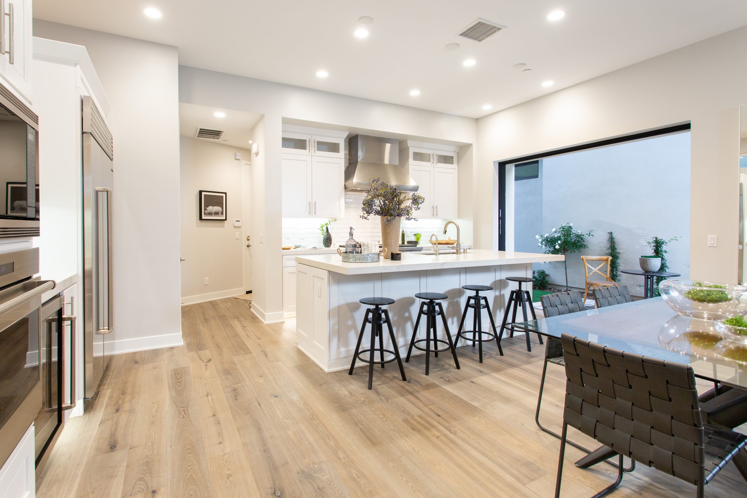 The main level embodies Southern California indoor/outdoor living with an open floor plan and soaring ceilings.