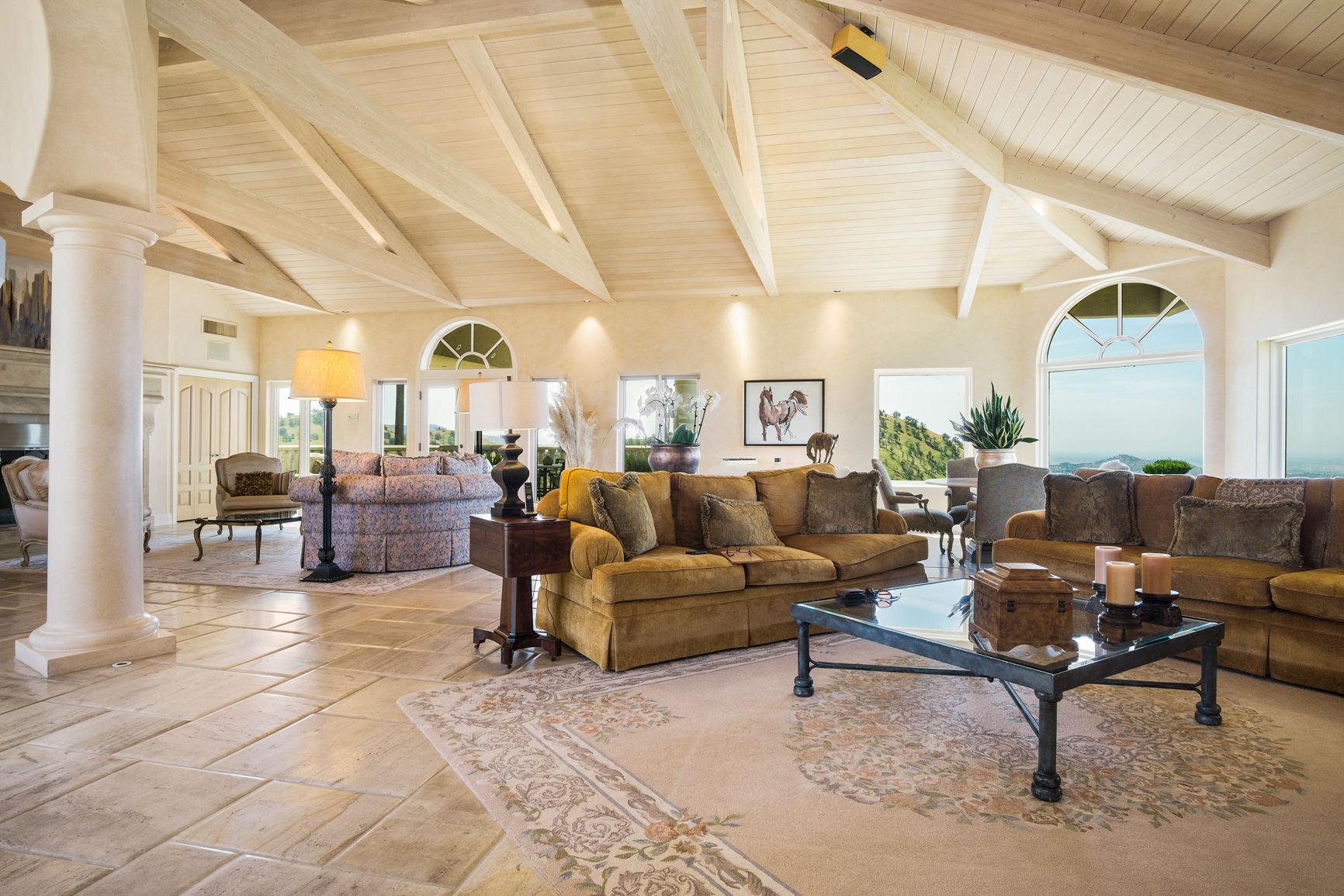 The six-bedroom home has views of the ranch and the valley area. A koi pond and water feature greet guests as they park in the large covered carport.