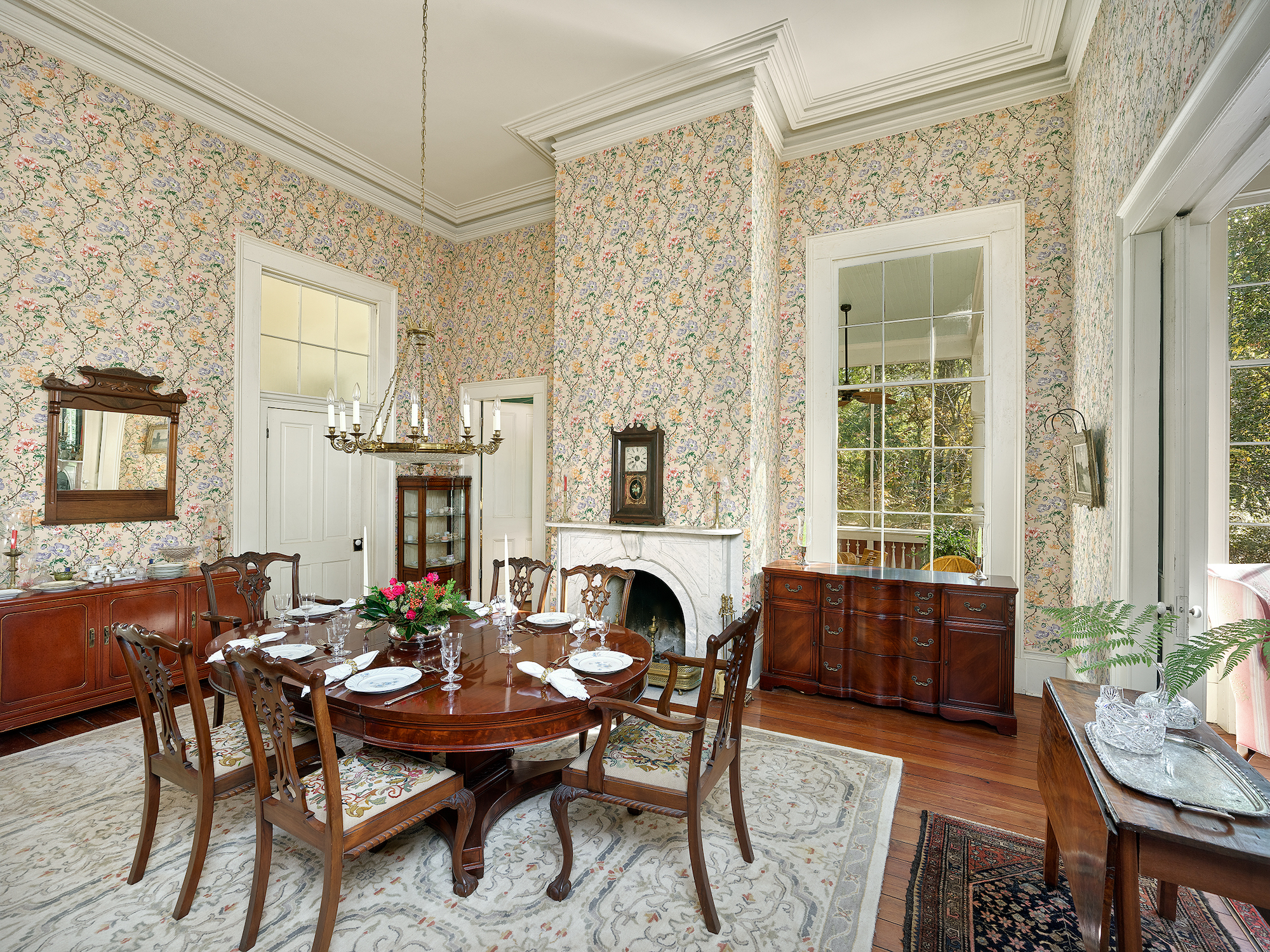 The 1847 home is an extraordinary, one-of-a-kind, single story house of Greek Revival architecture. It was crafted of longleaf heart pine harvested on site. The grand center hall is 10 feet wide, 15 feet high and 40 feet long, providing a jaw-dropping sight upon entrance.
