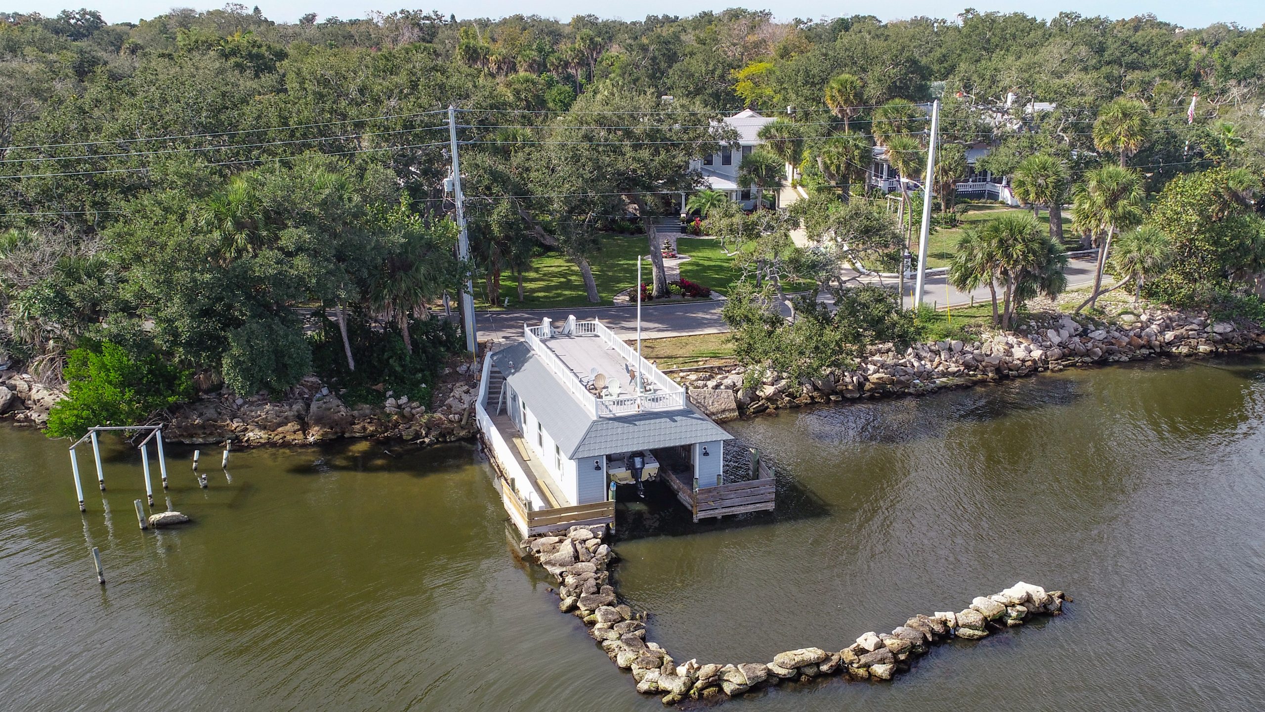 The property also includes a rare traditional boathouse with lift, the last remaining fully working in the area. It includes an observation deck and a coquina rock breakwater.