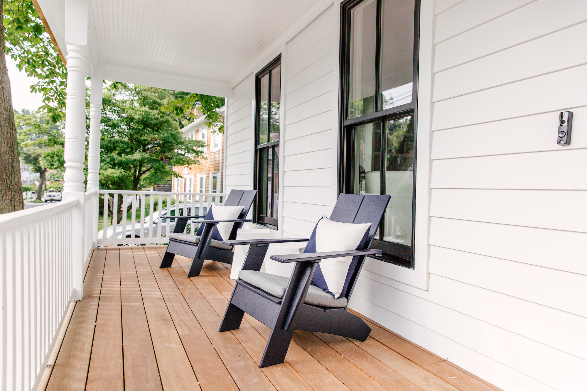 The mahogany porch with its signature spindle columns leads through Dutch doors into the open floor plan first level which draws the eye through to the beautifully landscaped backyard and terrace.