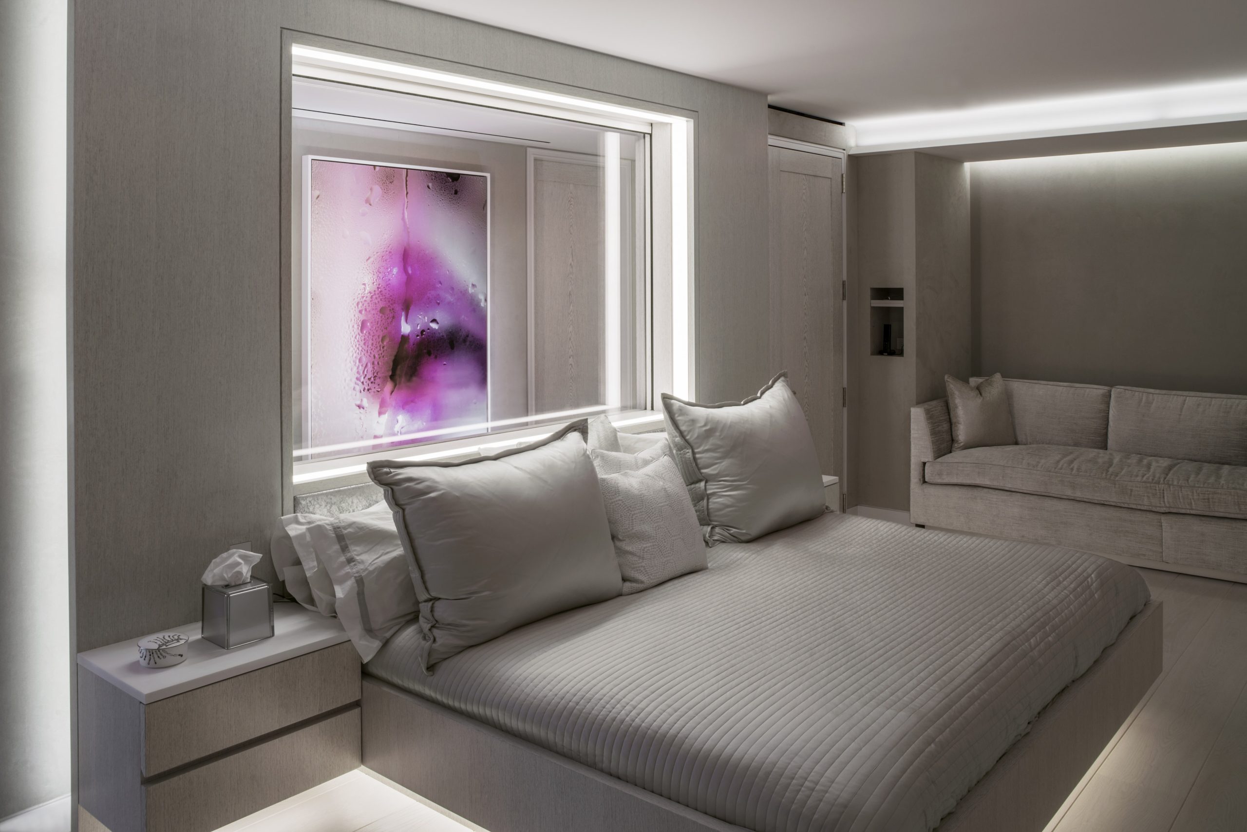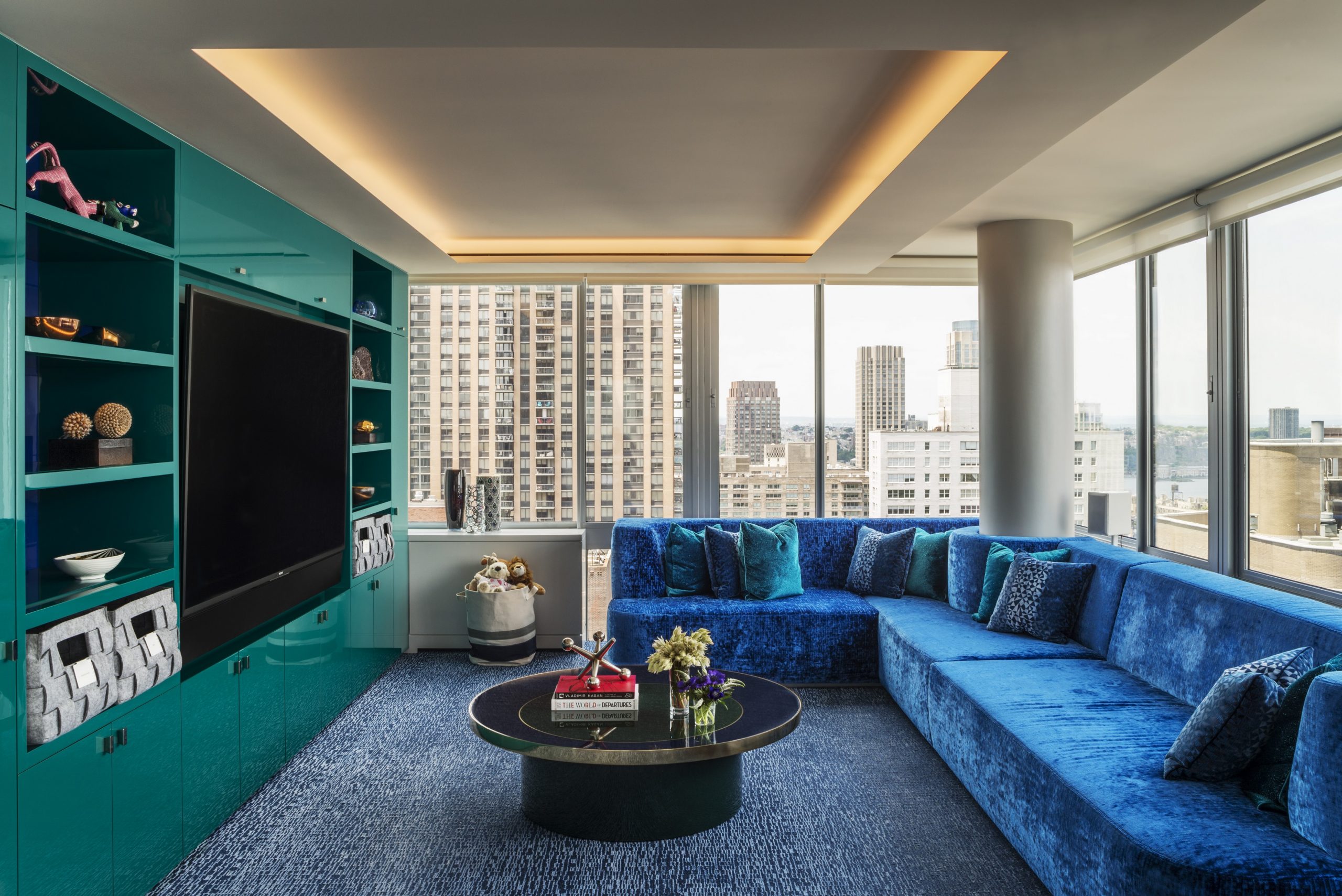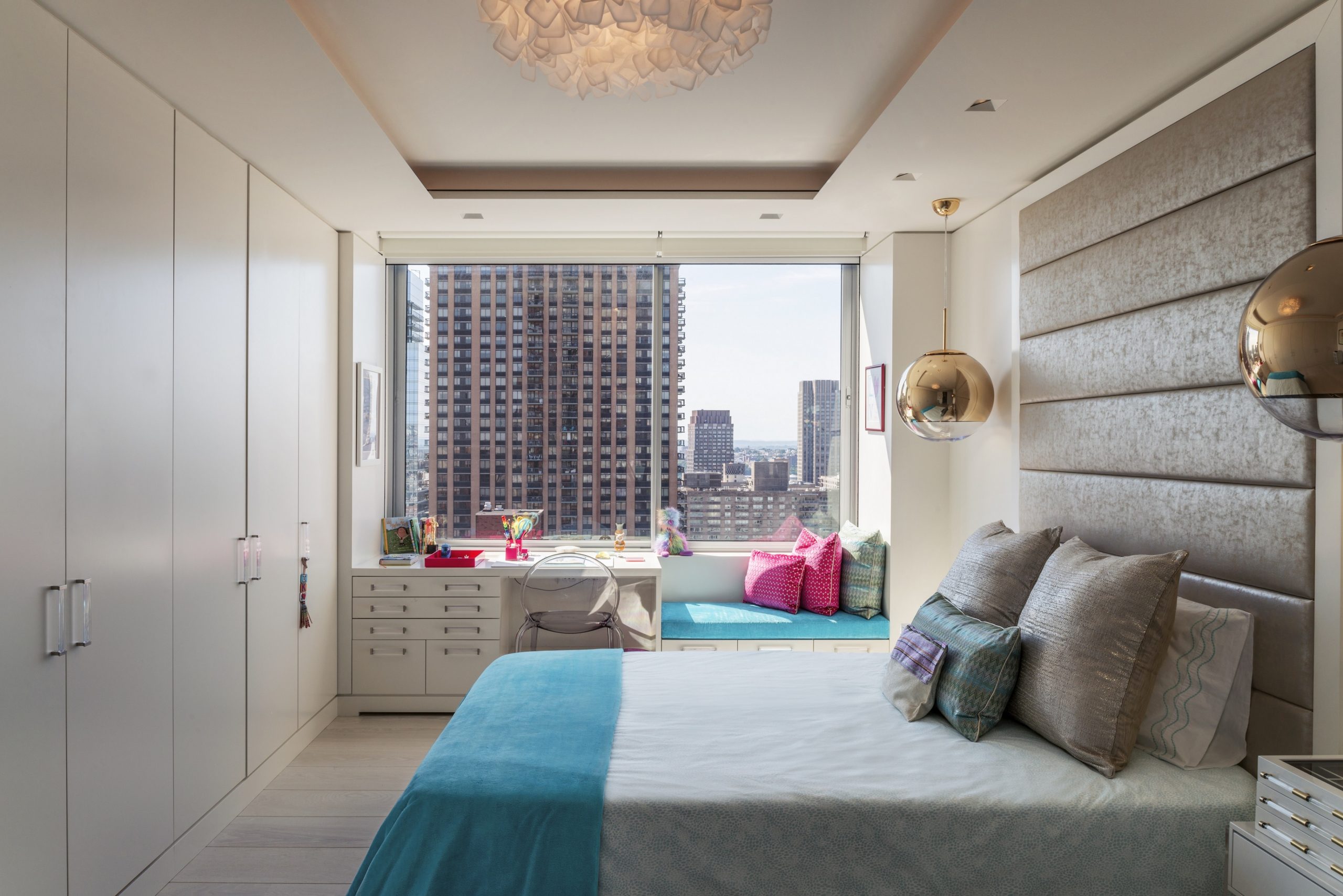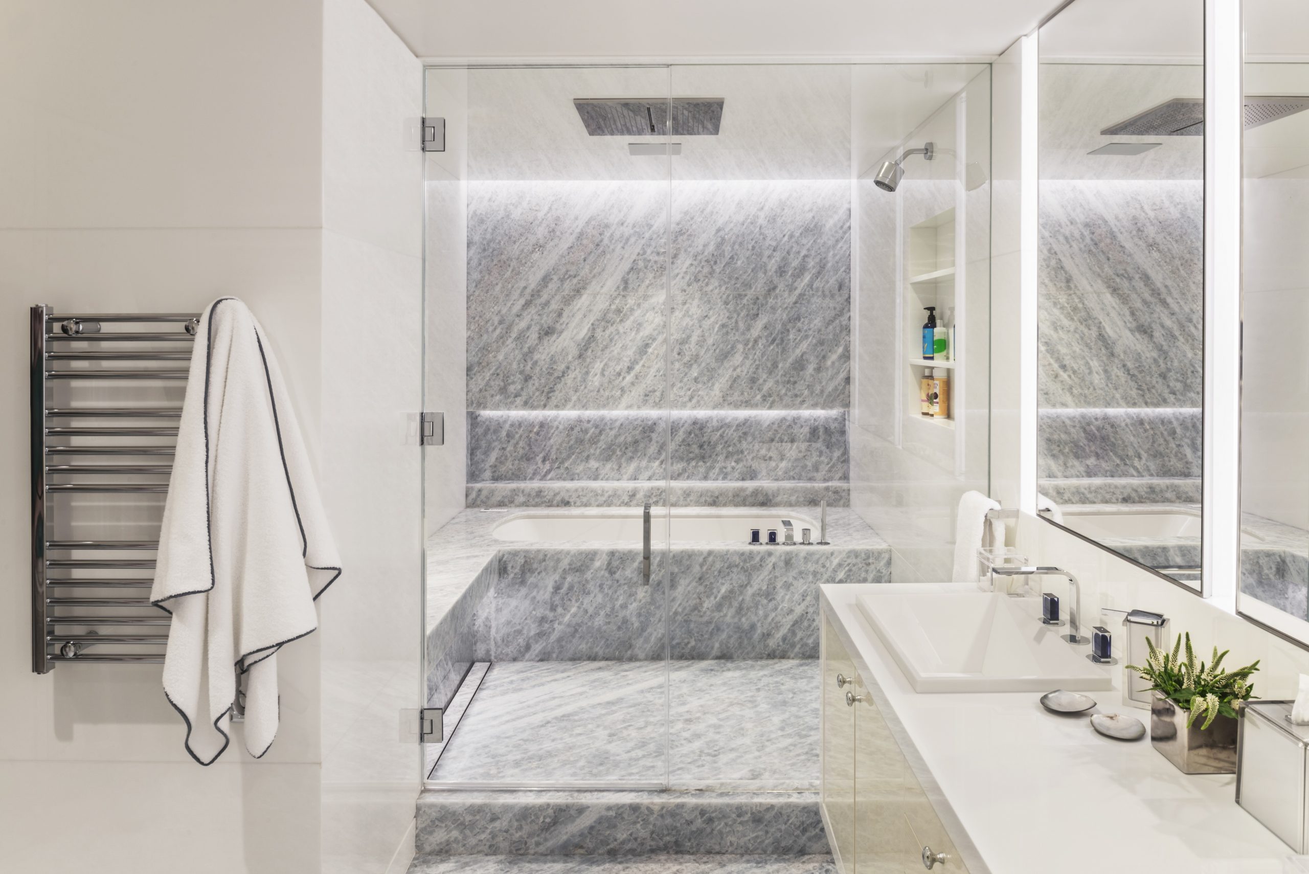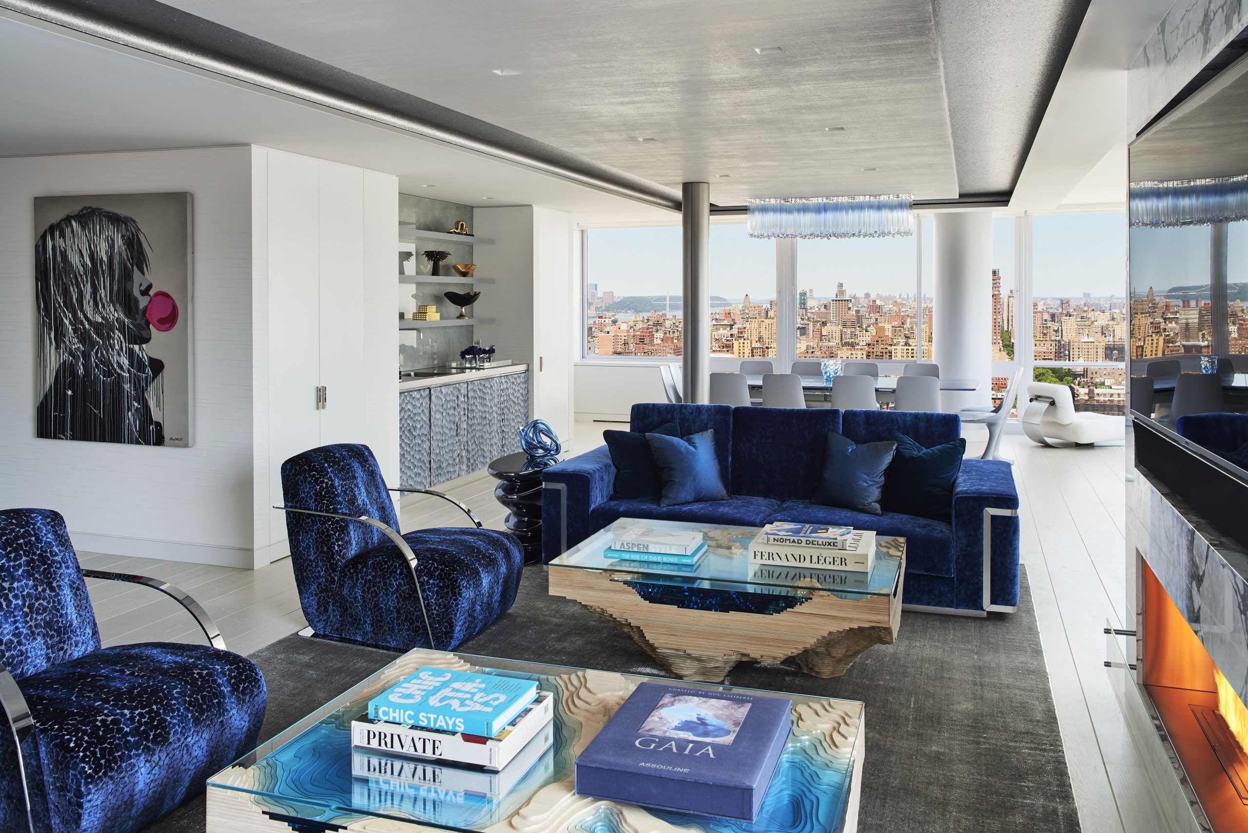 The four-bedroom home is entirely hypoallergenic and features a whole-house humidification system. The entire home also includes a Ketra LED lighting system that provides human-centric lighting by producing an infinite spectrum to mimic the color and intensity of sunlight. The formal dining room has walls of windows, allowing for stunning views of the skyline and Central Park.
