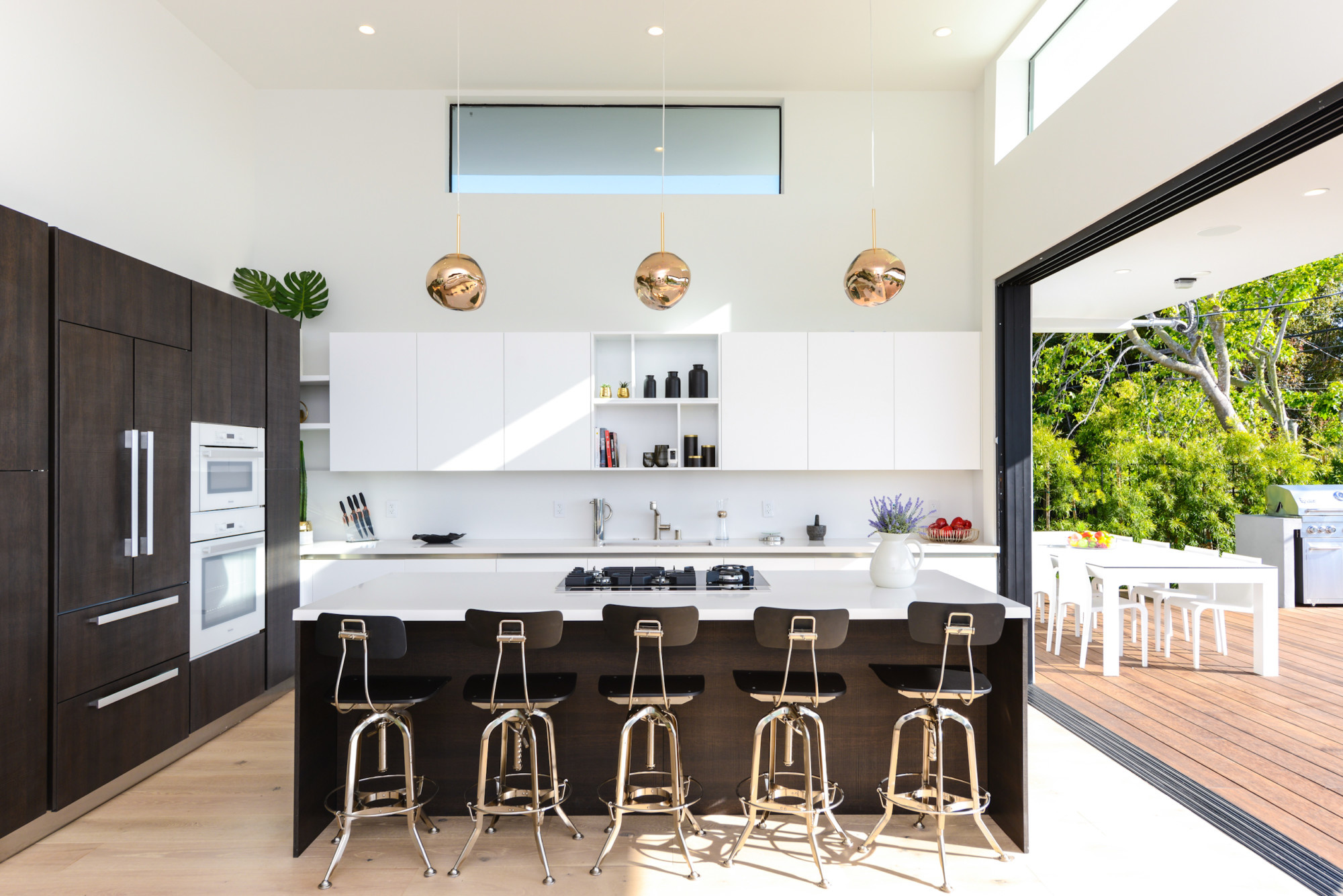 Miele appliances accent the custom Italian designed kitchen that overlooks stunning vistas in the backyard.