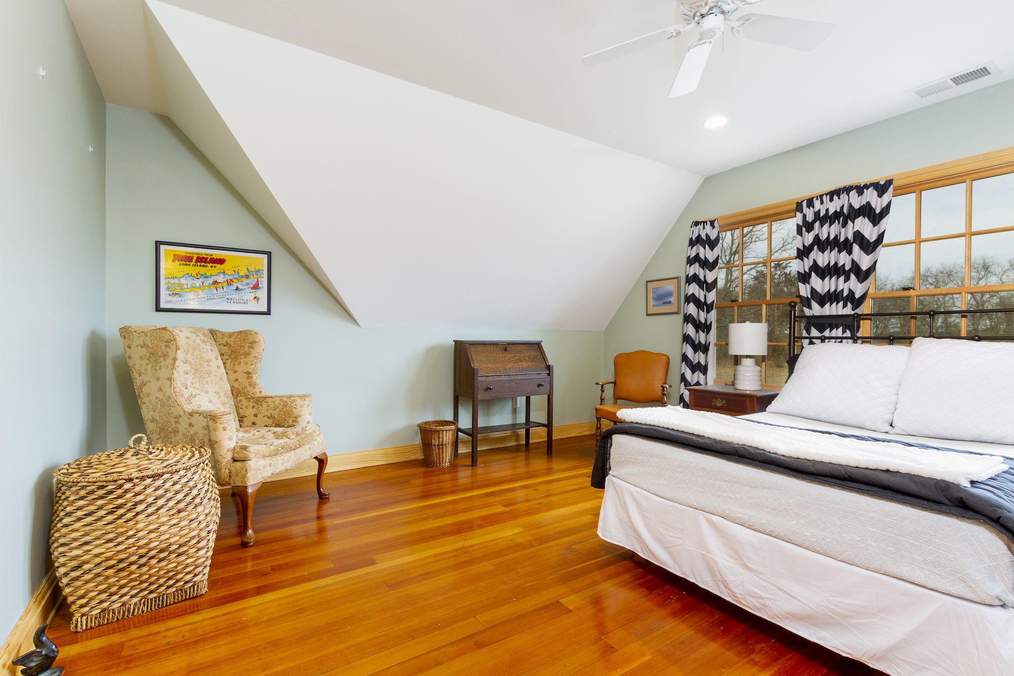 Upstairs are two generous bedrooms with a full bath. Bedrooms over a look at the ever-changing seascape.