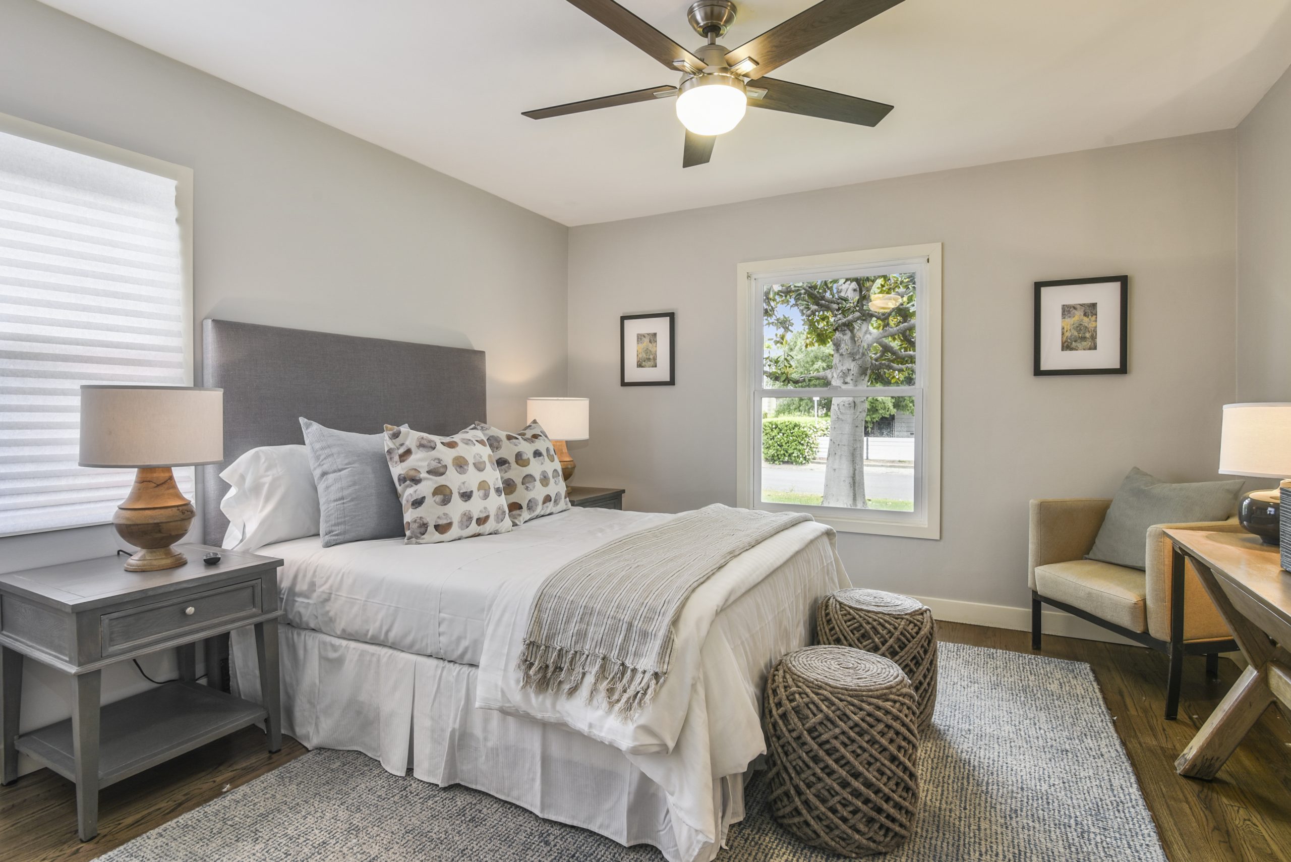 This single-story birdhouse ranch home is a single story with three bedrooms and three bathrooms complete with refinished oak hardwood floors.