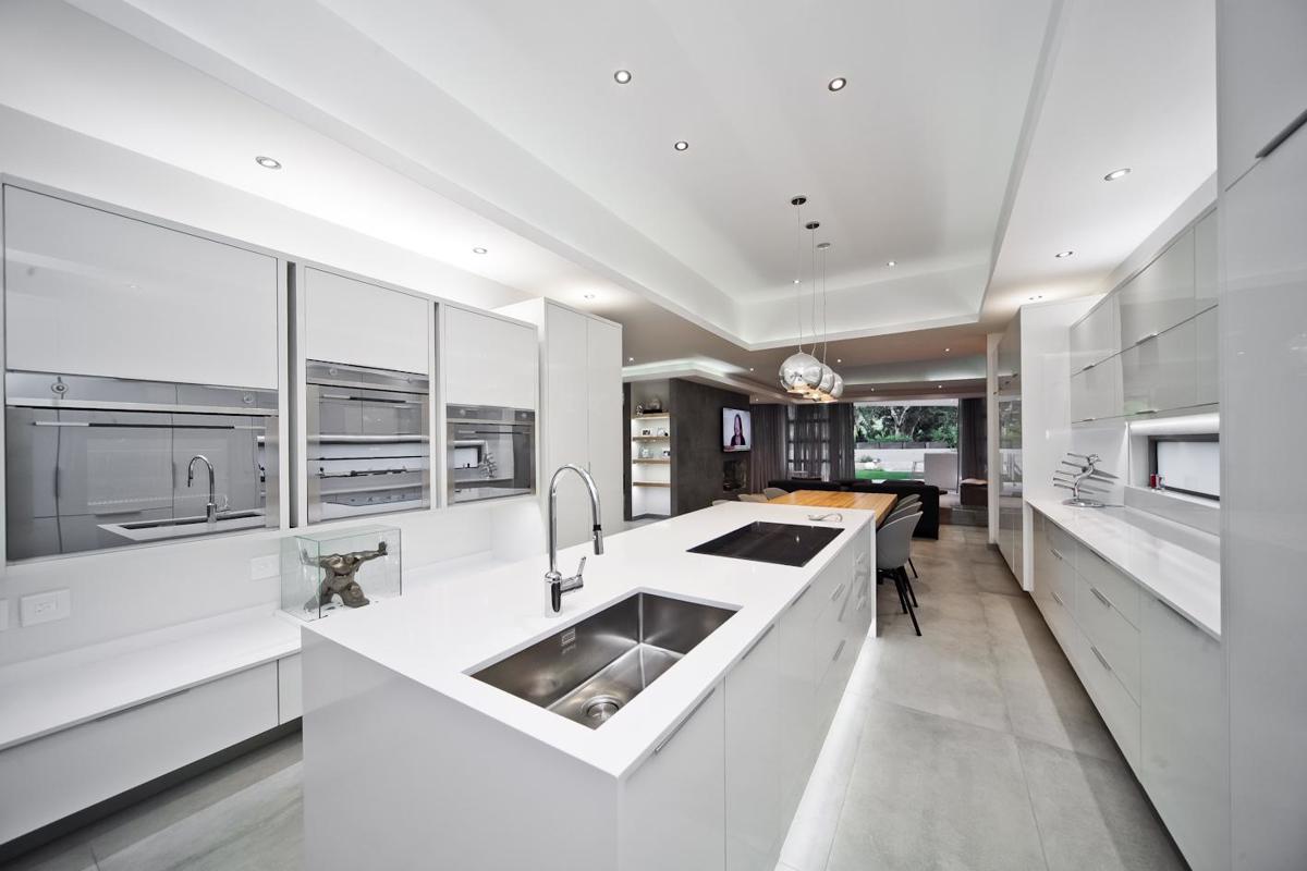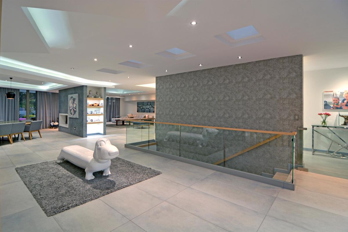 This exquisite, modern, multi-level home in the Sandton Country Club Estate in South Africa showcases the drama of South African contemporary design. Curving walls and porthole windows give the residence an almost otherworldly sense of style.